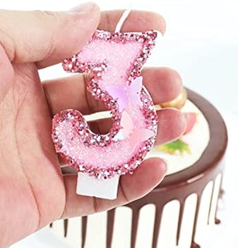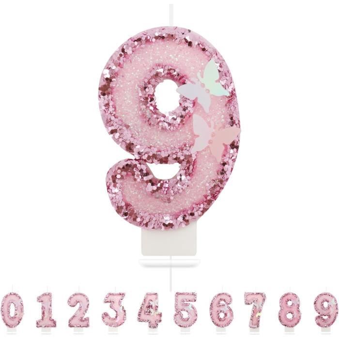 Bougie Chiffre 4 En 3D Rose Avec Papillons Et Paillettes - Pour Gâteau D'anniversaire - Cire Paraffine