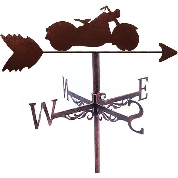 Girouette Moto En Acier Inoxydable - 35x50 Cm - Décoration Jardin, Patio - Indicateur Direction Vent Décoration Jardin Girouette