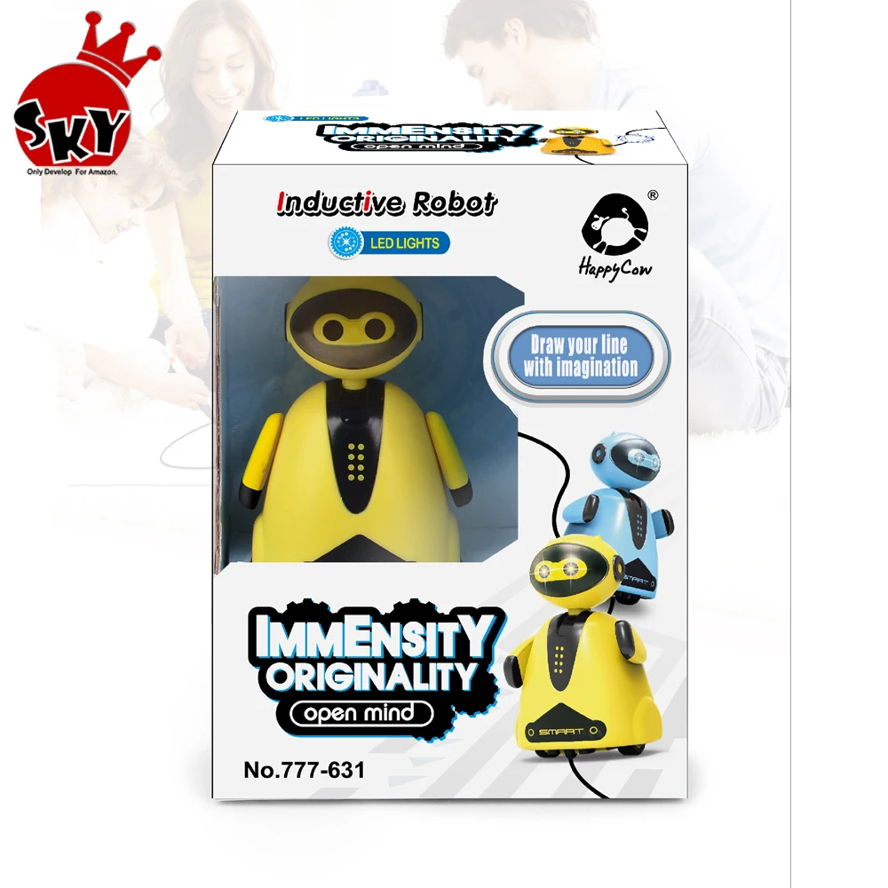 Les enfants adorent ce petit robot (ou ce tank, ou ce véhicule de chantier, selon le modèle choisi) qui suit les lignes qu'ils dessinent ! Le principe est simple : tu traces un parcours au feutre sur une feuille (fournie), tu allumes le robot avec l'interrupteur (alimentation par 4 piles bouton LR44 incluses), et il suit la ligne noire tout seul grâce à son capteur optique. C'est fascinant à regarder, et ça initie les enfants aux bases de la robotique et de la logique. En plastique solide, pour les 3 ans et plus. Le pack comprend le robot, du papier, un feutre, les piles et un manuel. Un jouet intelligent, pas cher, qui occupe longtemps et stimule la curiosité.