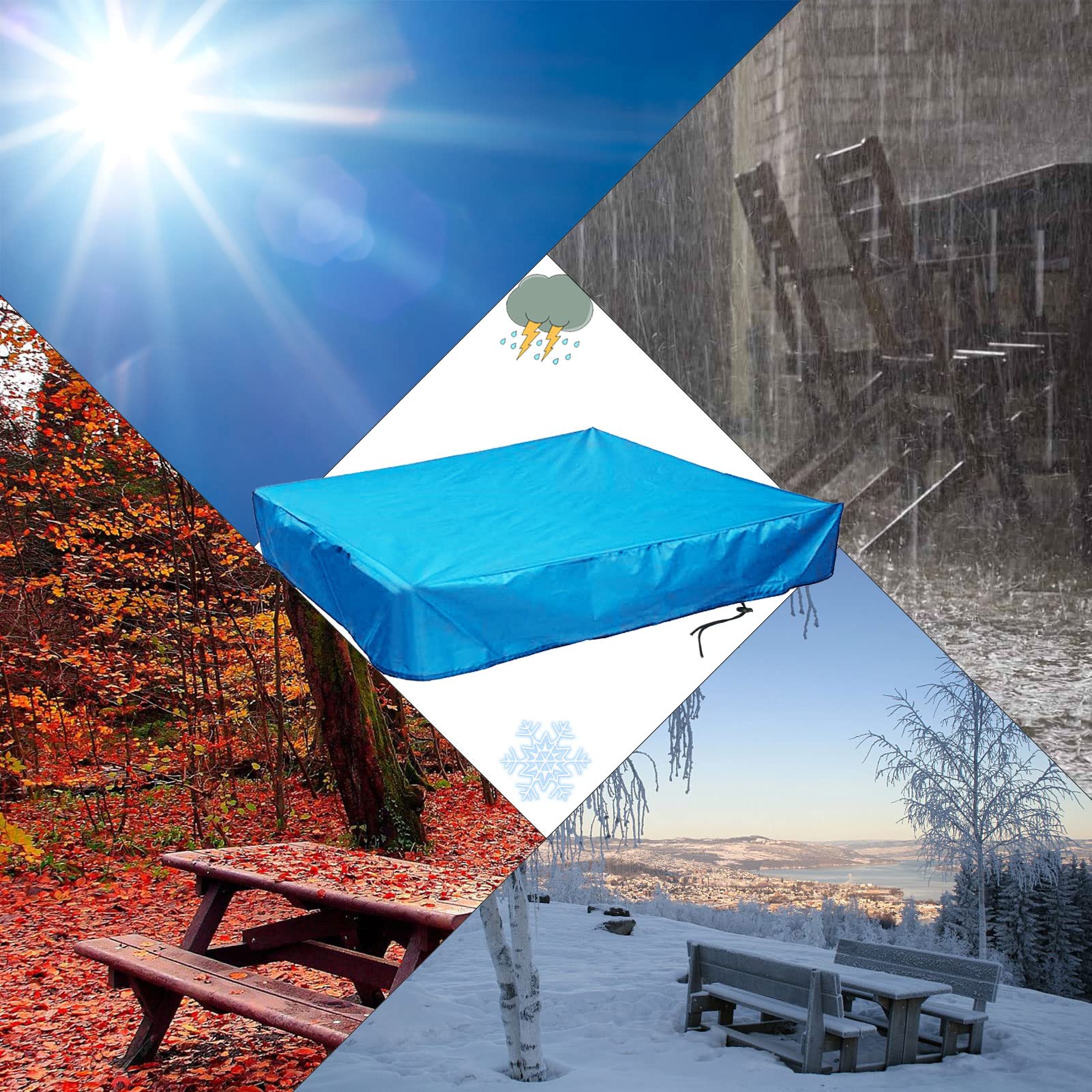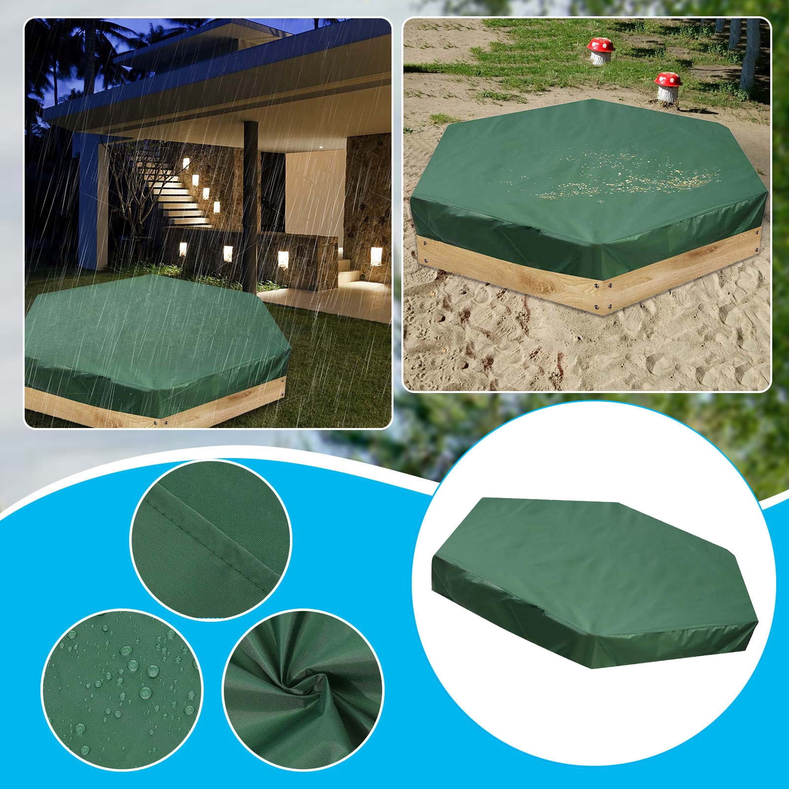 Votre bac à sable est dehors toute l'année ? Protégez-le avec cette housse robuste ! En tissu Oxford 210D, elle est imperméable, anti-poussière et résistante aux UV. Ainsi, le sable reste propre et sec, même après une averse ou sous le soleil. Dimensions 120 x 120 cm (d'autres tailles disponibles). Couleur gris discret. La housse est pliable, donc facile à ranger quand les enfants ne jouent pas. Elle se fixe avec des élastiques ou des cordons (selon votre bac). Idéale pour garder une aire de jeu saine, éviter que les feuilles et les insectes ne s'invitent, et prolonger la durée de vie du sable. Un achat malin pour les parents qui veulent un jardin bien entretenu !