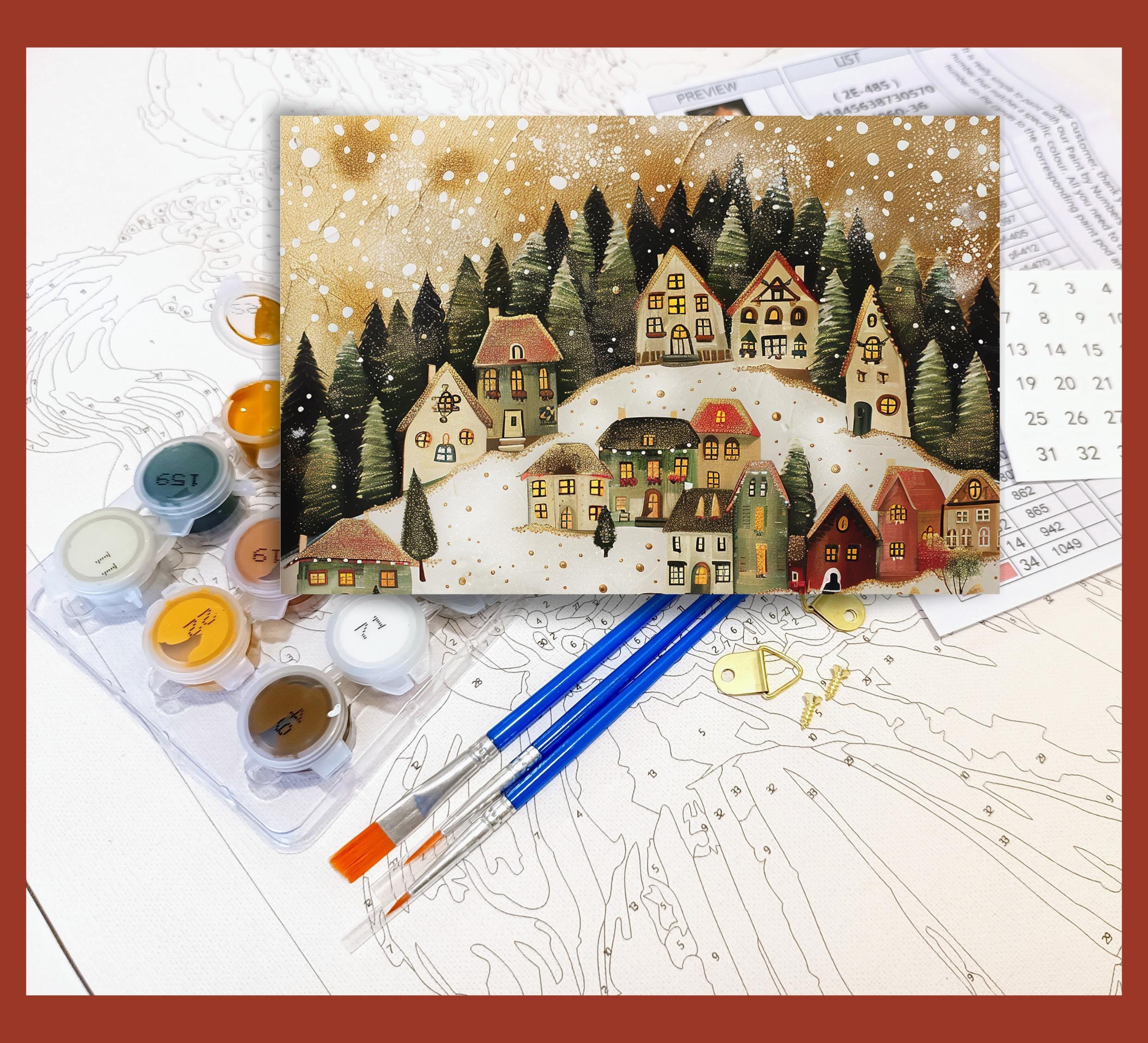 Kit Peinture Par Numéros Avec Cadre Bois 20x30 Cm - Loisir Créatif Adulte, Déco Noël, Anti-stress
