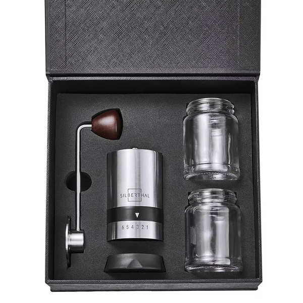 La poignée en bois est ergonomique, agréable à tenir, et elle donne un côté rétro et naturel à l’objet. Le mécanisme est fluide, sans à-coups, et tu peux régler la mouture très facilement via une molette en dessous – donc tu adaptes ton café à ton humeur du jour !