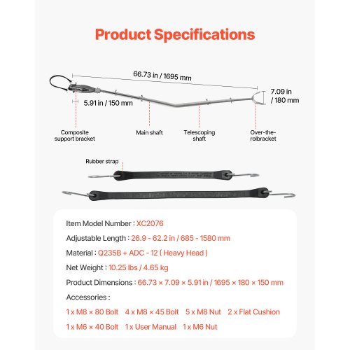Accessoire Remorque Galvanisé Protège-tableau Arrière De Bateau VEVOR - Longueur Réglable 60-91 Cm - Pour Moteurs <100 CV - Résistant à La Corrosion - Support Remorquage Protection Poupe Remorque