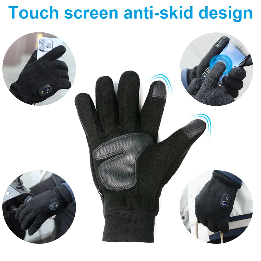 Gants Chauffants 3 Niveaux Température Gants Chauffants Rechargeables 5 Doigts - 3 Niveaux De Température - Pour Randonnée, Ski, équitation - Homme/Femme Gants Tactiles USB-C Chauffants