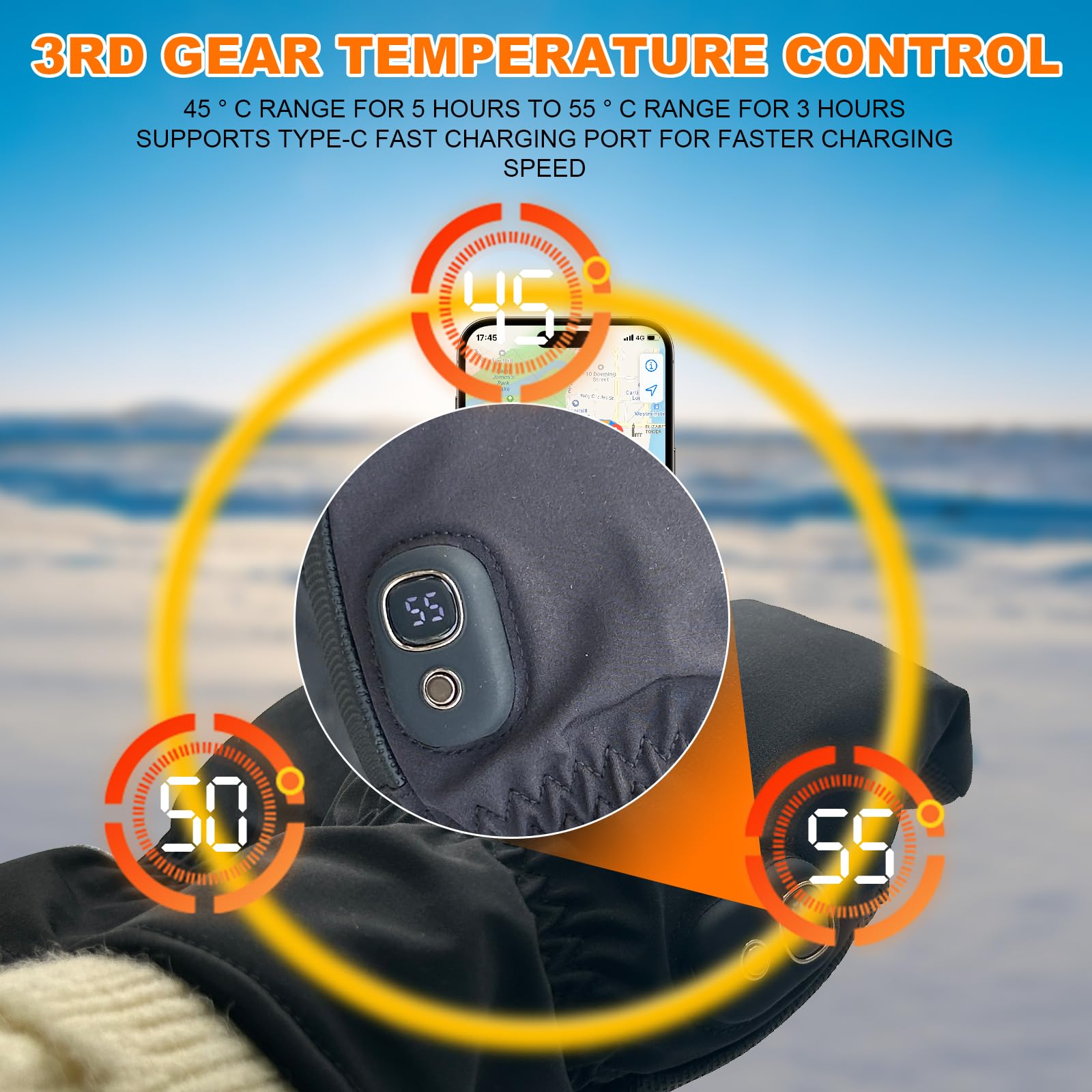 Tu détestes avoir les mains gelées en hiver ? Ces gants chauffants rechargeables sont la solution ! Avec leurs 3 niveaux de température (environ 45°C, 50°C et 55°C), tu adaptes la chaleur selon le froid et ton activité.