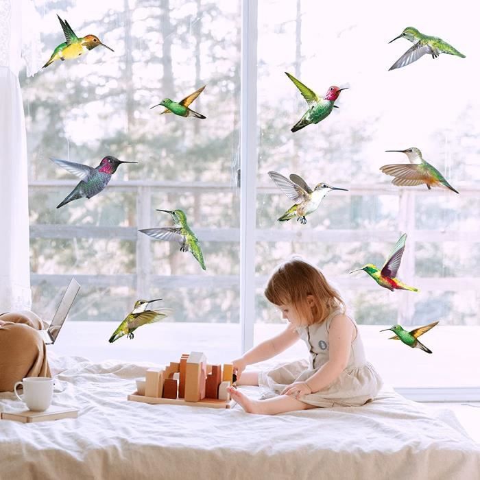 Hey ! Ces autocollants, c’est une super solution pour éviter que les oiseaux ne heurtent tes fenêtres. Le pack comprend 48 autocollants : 33 en forme de colibri (de 8 à 13 cm) et 15 petits cercles (2,3 à 3,5 cm de diamètre). En film prisme, ils réfléchissent la lumière et créent de jolis arcs-en-ciel dans ta pièce quand le soleil tape. Mais surtout, les oiseaux les voient et évitent la vitre. Tu peux les coller à l’intérieur ou à l’extérieur, sans colle – juste un peu d’eau, et ils tiennent bien. Ils sont amovibles et réutilisables, donc pas de traces si tu changes d’avis. En plus de protéger les oiseaux, ils décorent joliment ta fenêtre ou ta porte en verre. Un produit malin, écologique, et vraiment efficace pour réduire les collisions. Parfait pour les maisons avec baies vitrées ou les vérandas !