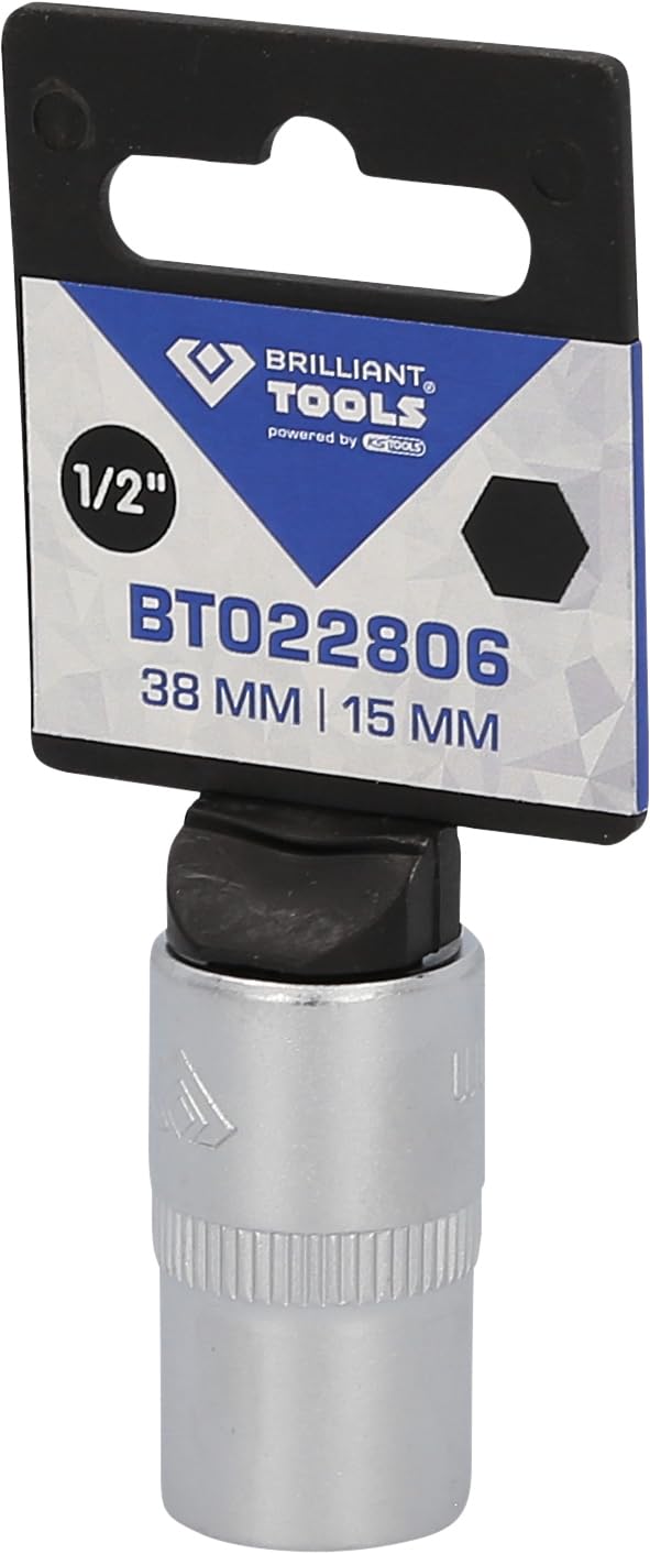 Cette douille à chocs BRILLIANT TOOLS, c'est du solide ! En taille 6 pans 27 mm, avec un entraînement carré 1/2\ (12.5 mm), elle est faite pour les clés à choc pneumatiques ou électriques, les cliquets ou les clés dynamométriques. En version courte (longueur totale 38 mm), elle est parfaite pour les endroits exigus. Fabriquée en acier chrome-molybdène de qualité, elle est phosphatée pour résister à la corrosion. Conforme à la norme DIN 3121, elle a une longévité exceptionnelle. Que tu sois mécanicien pro ou bricoleur sérieux, cette douille ne te lâchera pas. La marque BRILLIANT TOOLS, c'est de la qualité allemande à prix smart. Un outil fiable pour serrer ou desserrer les écrous tenaces. Investis une fois, utilise-la longtemps !