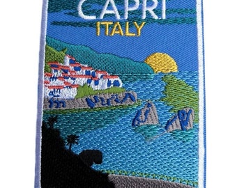 Patch Brodé Côte Amalfitaine Italie - Écusson Thermocollant Ou à Coudre 8,9 Cm - Souvenir Voyage DIY