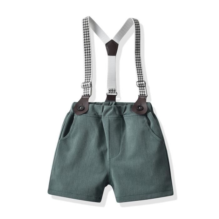 Cet ensemble short avec bretelles et chemise à manches courtes est parfait pour habiller ton petit garçon pendant l’été ! Confortable, léger et stylé, il est idéal pour les journées en famille, les anniversaires, les séances photo ou simplement pour jouer à la maison. La chemise est en 35% coton et 65% polyester, le short en 98% polyester et 2% élasthanne : le tissu est doux, respirant et facile à entretenir. On te conseille de le laver à la main à l’eau froide pour préserver les couleurs et la forme. Le design est simple et mignon, avec un col rond et une coupe décontractée. Disponible en plusieurs tailles de 6 mois à 5 ans, avec des mesures détaillées pour t’aider à choisir. Petit conseil : les couleurs peuvent légèrement varier selon l’écran, et les mesures sont prises à la main (tolérance de 1 à 3 cm). Si tu as un doute sur la taille, contacte-nous, on te répond sous 24h !