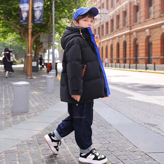 L’hiver arrive, et ton petit aventurier a besoin d’un manteau vraiment chaud et stylé ? Cette doudoune pour garçon est faite pour lui ! \n\nAvec son rembourrage généreux et sa coupe longue, il garde la chaleur même par temps froid ou venteux. La capuche (fixe) protège bien la tête et le cou, et les poignets ajustables empêchent l’air de passer. \n\nCôté look, le design est simple mais moderne, avec plusieurs coloris au choix — facile à assortir avec n’importe quel pantalon ou sac. Et en plus d’être joli, il est pratique : des poches pour les petits trésors, et lavable en machine sans souci. \n\nIdéal pour aller à l’école, jouer dehors, ou partir en week-end en famille. Un manteau chaud, résistant, et qui plaît aussi aux parents (parce que oui, le côté pratique, on adore).