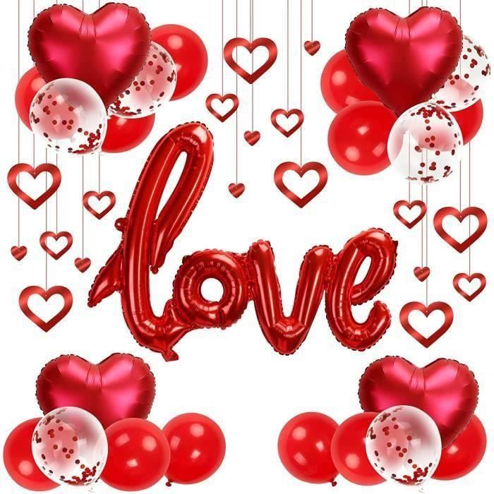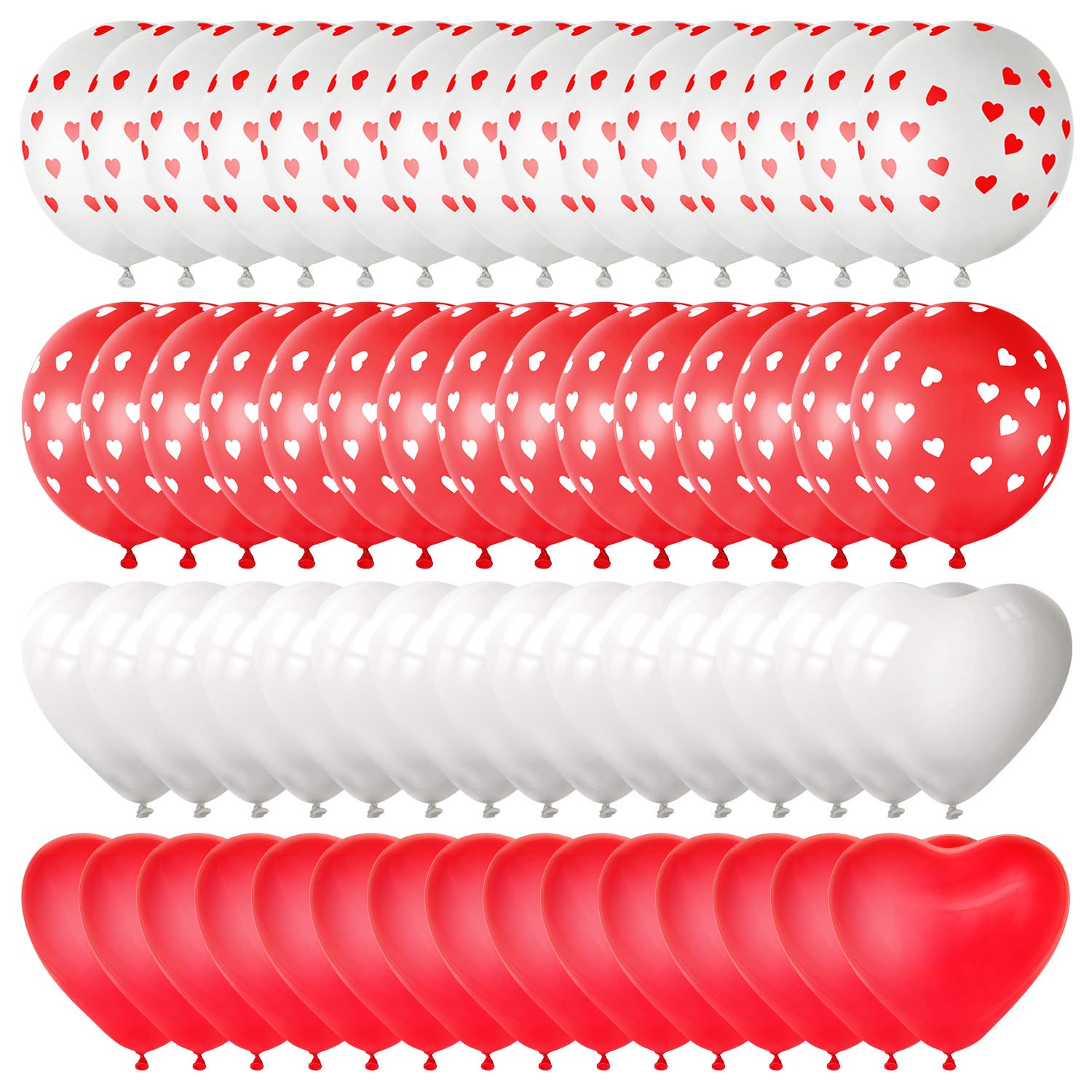 Fete Des Meres Decoration 60 Ballons En Forme De Cœur Pour Mariage, Saint-Valentin, Anniversaire - 25 Transparents, 25 Rouges, 25 Blancs + Rubans Ballon Coeur