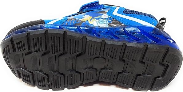 Votre enfant va adorer ces chaussures de sport Sonic ! Elles sont trop cool avec leurs lumières LED qui s'allument à chaque pas. En bleu électrique et noir, elles ont un style dynamique qui plaît aux petits. Pratique : la fermeture scratch permet à l'enfant de les mettre et de les enlever tout seul, comme un grand ! La tige est en maille respirante, donc le pied reste au sec même en courant. La semelle est bien amortissante pour protéger les articulations pendant les jeux et les sauts. Elles sont aussi équipées de bandes réfléchissantes pour être plus visibles quand il commence à faire sombre. Parfaites pour l'école, le parc, le sport ou les anniversaires. Confortables, sûres et hyper stylées, ces chaussures Sonic vont devenir ses préférées ! Disponible en plusieurs tailles, pensez à vérifier le guide des tailles. Un cadeau qui fait toujours son effet.