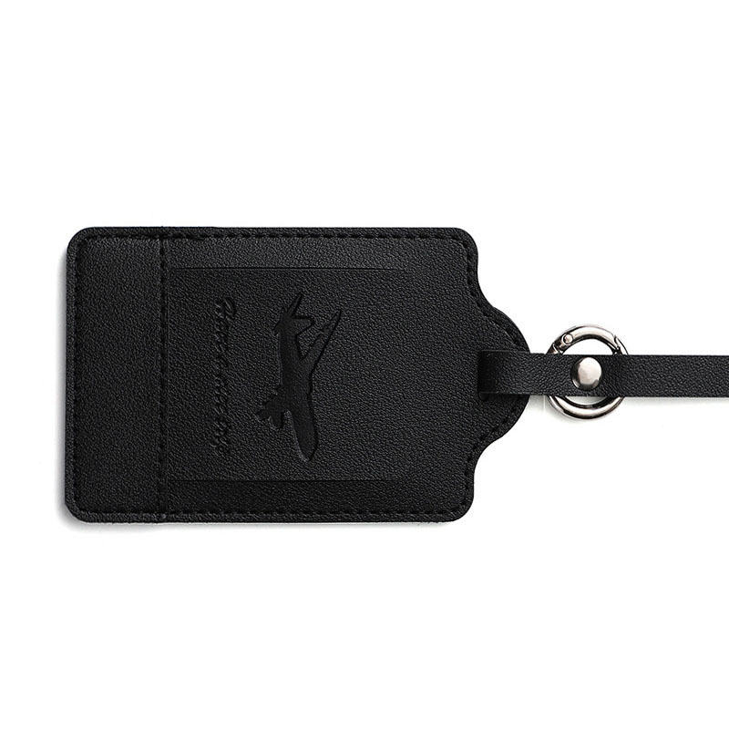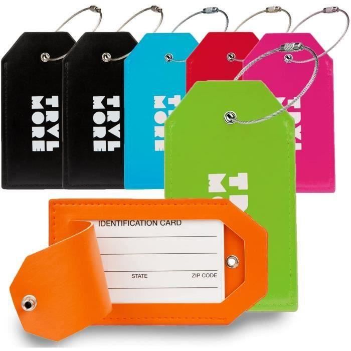 Lot De 6 étiquettes à Bagages En Cuir Synthétique Noir - Avec Sangle Réglable Et Carte D'info - Pour Valise, Sac à Dos, Voyage