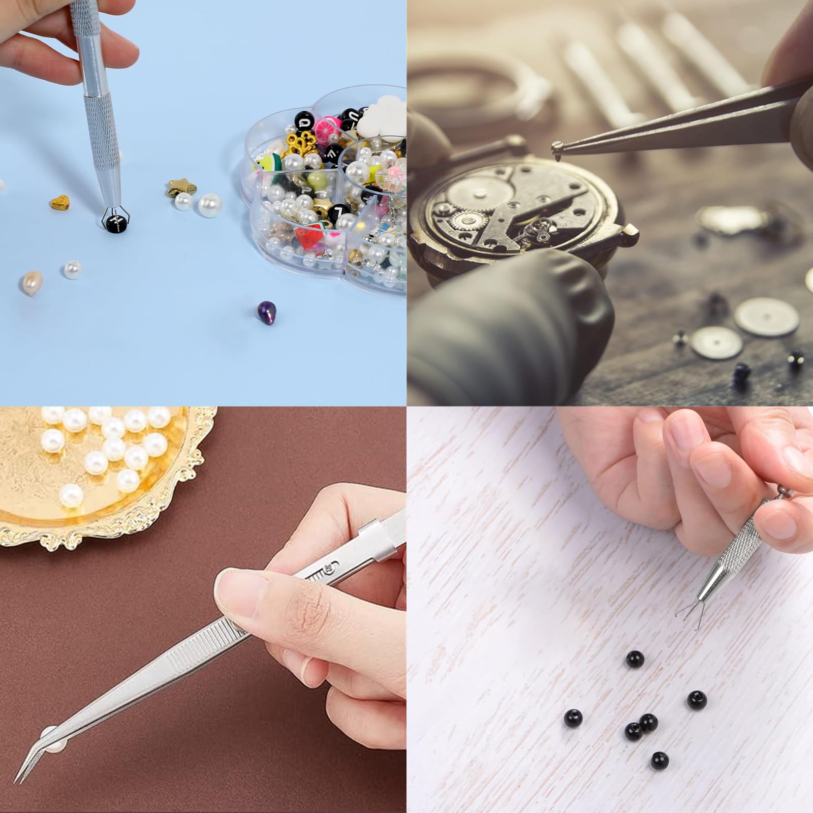 Pince Pour Perles Pince à Piercing 4 Mâchoires En Acier Inoxydable - Lot De 3 Pour Saisir Perles, Strass, Petites Pièces (argent, Noir, Or) Pince à Bijoux Micro Composants