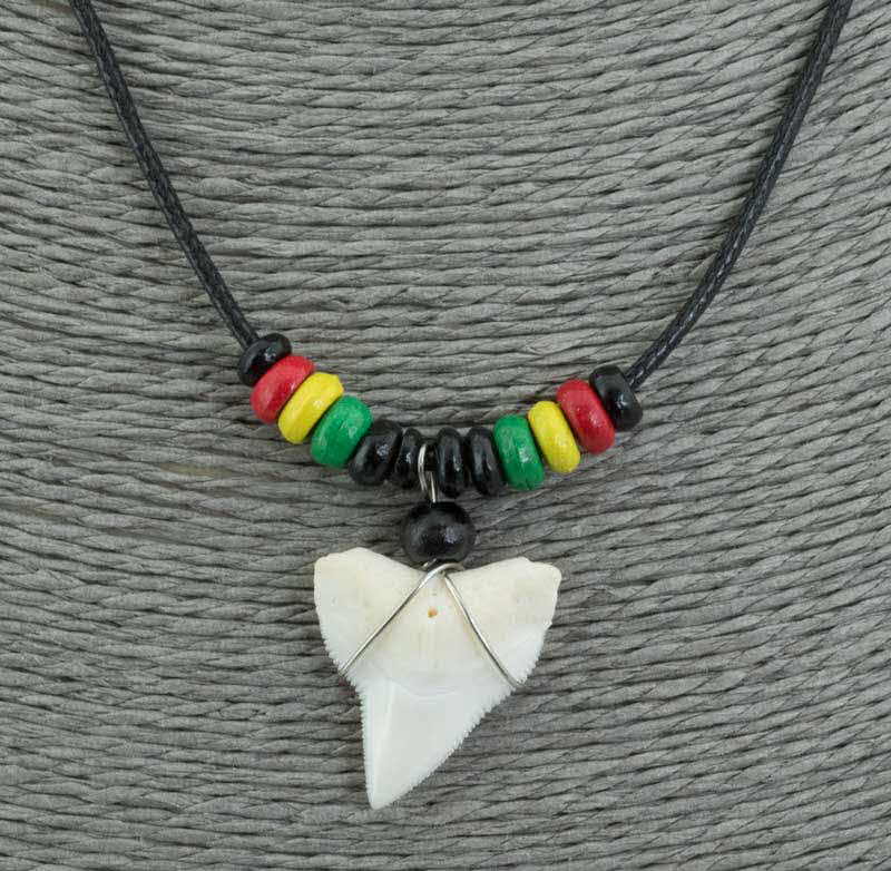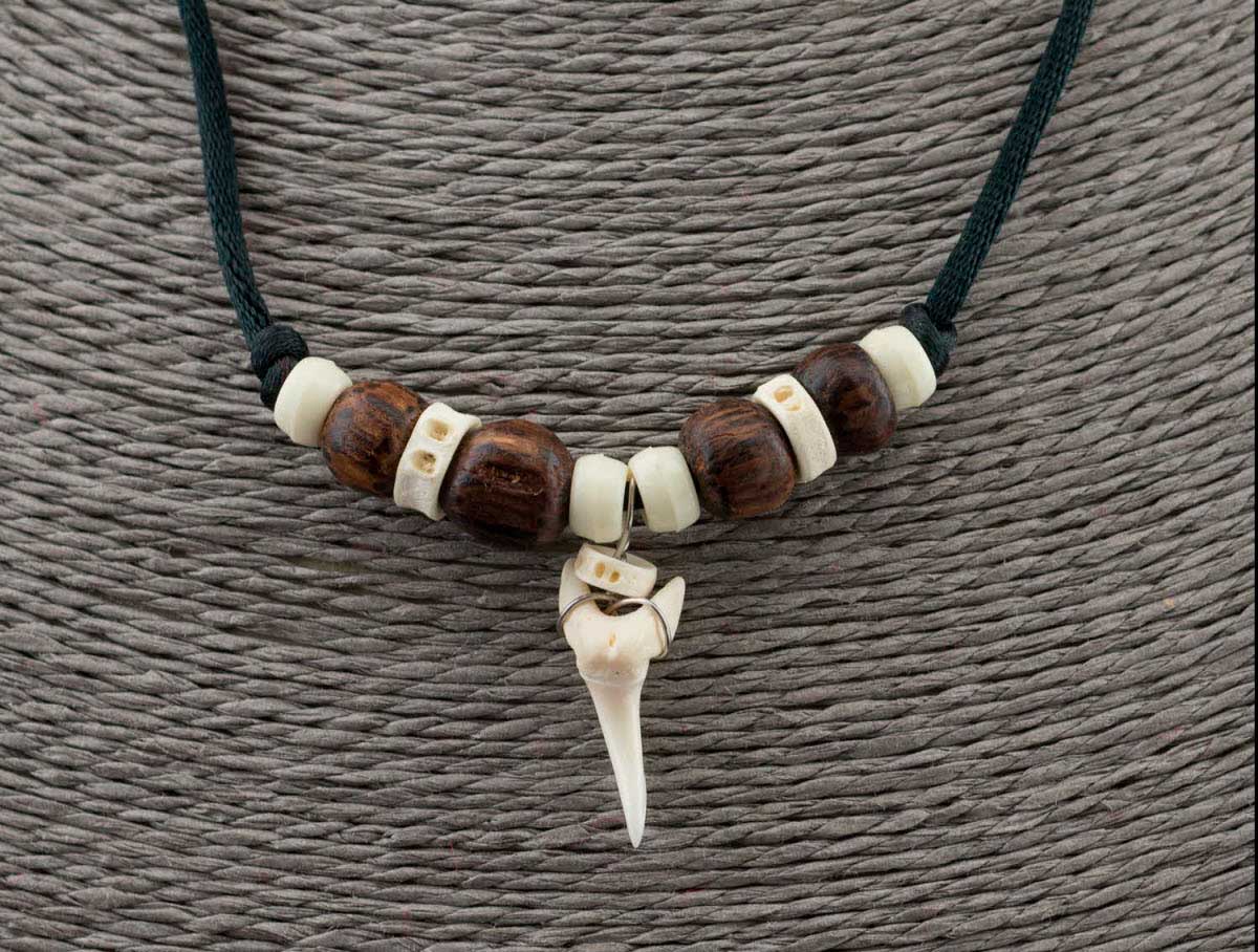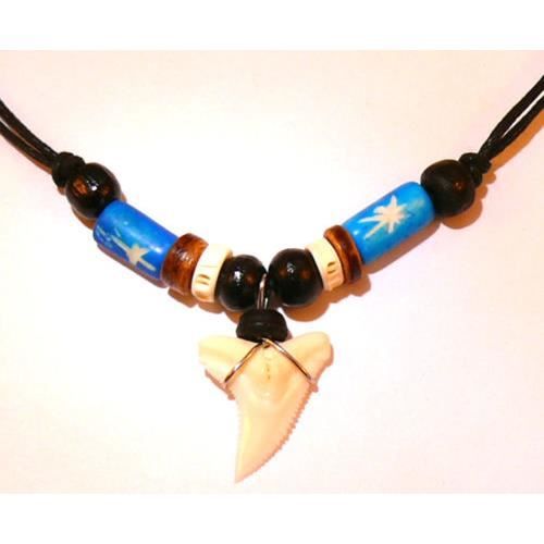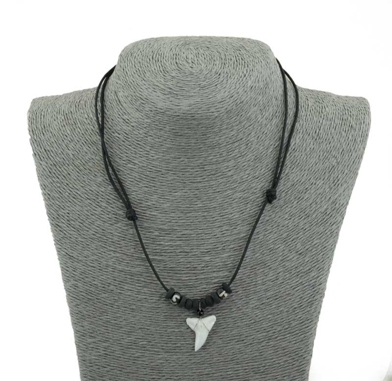 Collier Pendentif Dent De Requin - Résine Réaliste Avec Perles En Bois - Chaîne Réglable Unisexe - Style Surf, Plage, Tribal - Cadeau Original