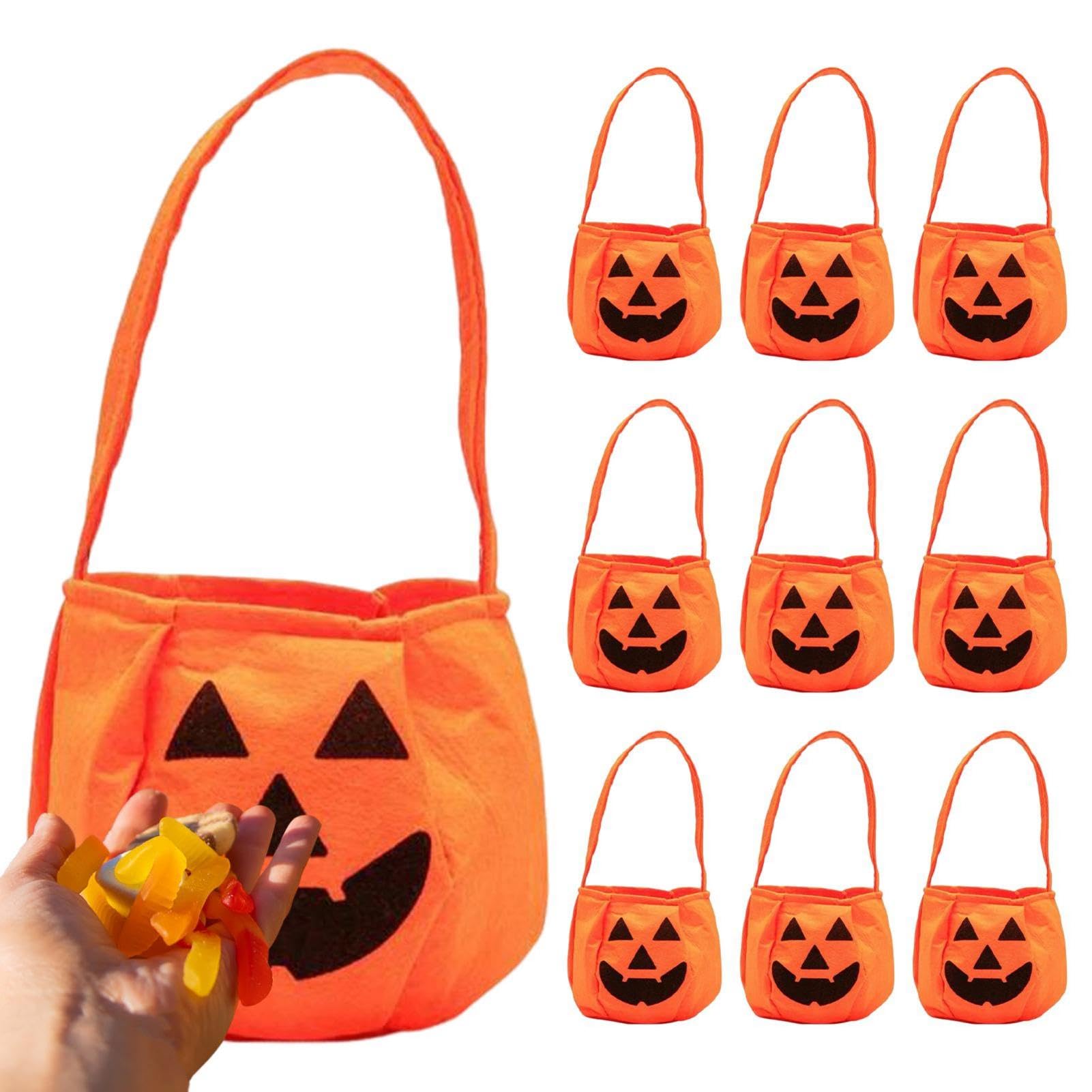 Seau à Bonbons Trick Or Treat 2 Sacs Citrouille Halloween - Seau à Bonbons Portable Réutilisable - Tissu Non Tissé Sac Friandises Réutilisable