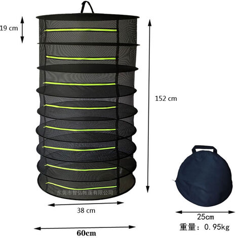 Filet De Séchage 6 étages Pliable - 60 Cm De Diamètre - Pour Herbes, Fleurs, Fruits, Viandes - Avec Crochet Et Sac