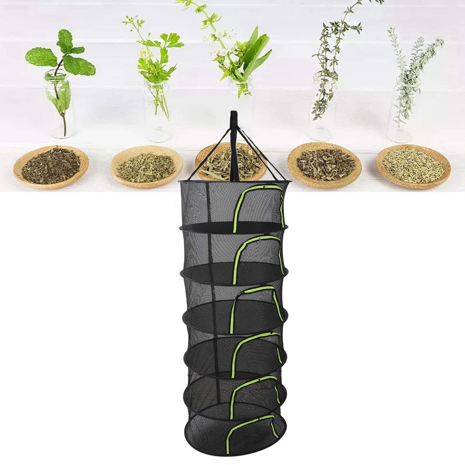 Filet Séchage 6 étages Filet De Séchage 6 étages Pliable - 60 Cm De Diamètre - Pour Herbes, Fleurs, Fruits, Viandes - Avec Crochet Et Sac Filet Séchage Fleurs Fruits
