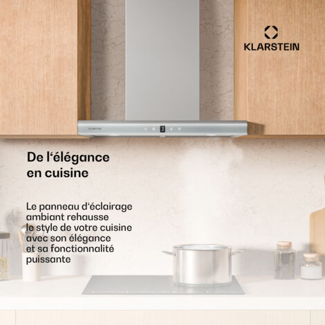 Tu veux une hotte qui en jette dans ta cuisine ? La Klarstein Velaire est faite pour toi ! Avec son design épuré en verre noir, elle s'intègre parfaitement dans une cuisine moderne. Et côté performance, elle assure : elle aspire jusqu'à 600 m³/h, classe A++ pour économiser de l'énergie, et elle est vraiment silencieuse (entre 58 et 66 dB max).