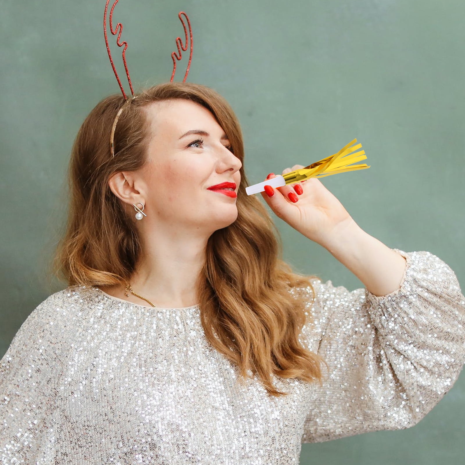 Pour animer une fête d'anniversaire, une remise de diplômes, un mariage ou un événement sportif, ces sifflets pailletés sont parfaits ! Le lot comprend 48 sifflets dans des couleurs vives et assorties, chacun avec des franges métalliques qui scintillent et bougent quand on souffle dedans. Ils produisent un son joyeux et festif qui encourage l'ambiance. Fabriqués en plastique de qualité, ils sont sûrs (non toxiques) et assez solides. Mesurant environ 16,5 cm de long, ils sont faciles à tenir, même pour les enfants. Distribuez-les aux invités pour un moment de rires collectifs ou utilisez-les comme cadeau de fête. Un accessoire pas cher qui garantit du bruit et de la bonne humeur !