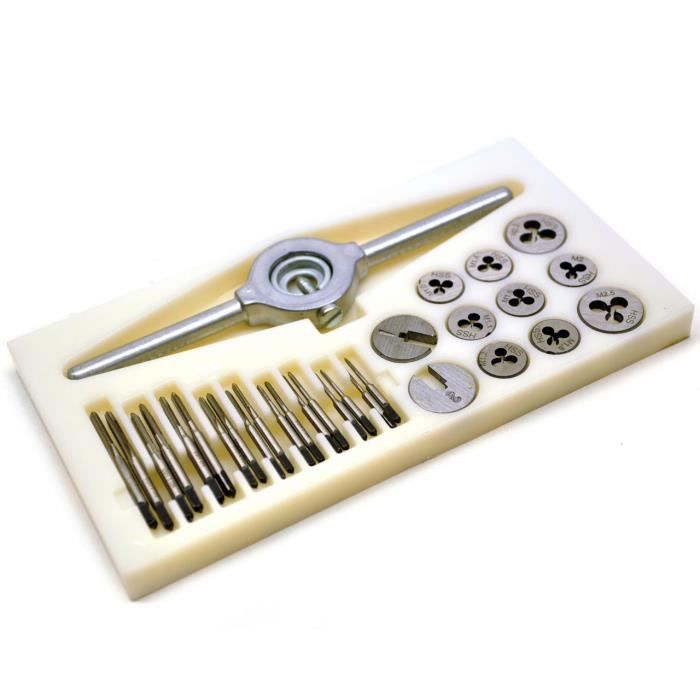 Les bricoleurs et pro du métal, ce jeu est pour vous ! Besoin de créer un filetage métrique M22 avec un pas de 1.5 mm ? Ce set de tarauds et filière en acier rapide (HSS) vous sauve la mise.