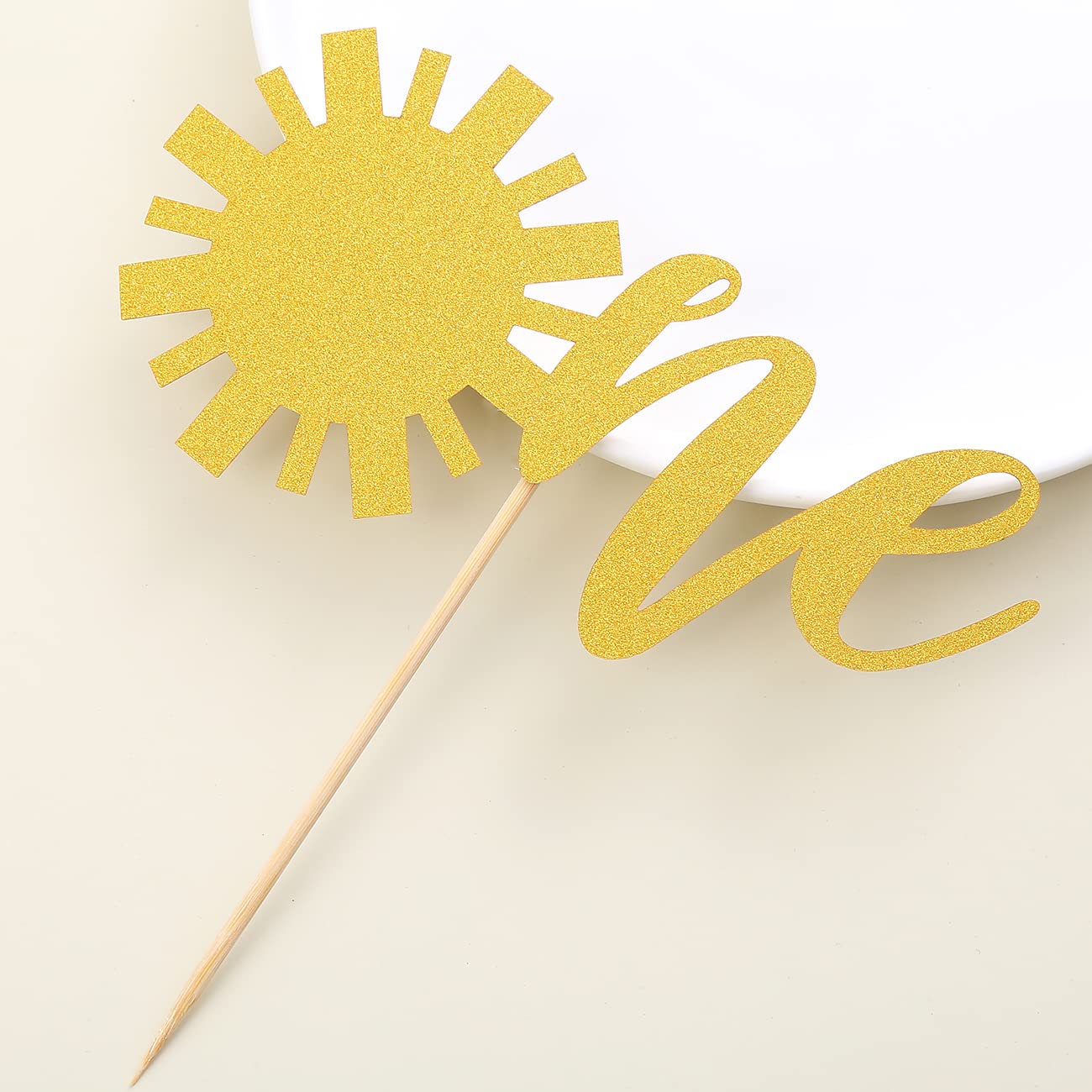 Décoration Gâteau 1er Anniversaire Bébé – Soleil Doré Pailleté – Simple Face, 15 Cm – Pour Fête Et Souvenir