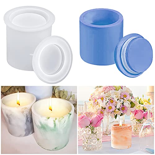 Moules Bougies DIY Réutilisables Lot De 2 Moules à Bougies En Silicone Avec Couvercles - Forme Rayée Pour Création DIY Décorative Moule Bougie Silicone
