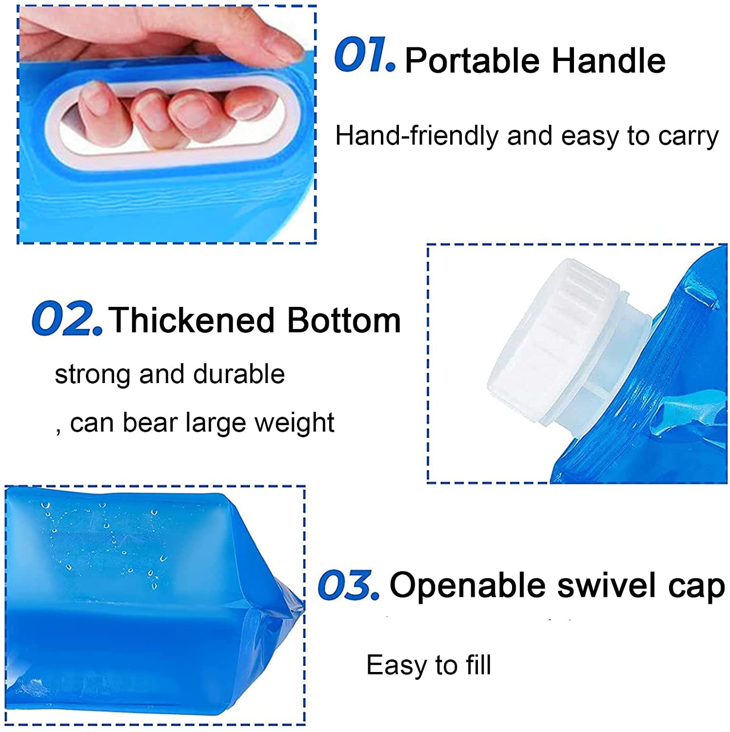 Pack De 4 Sacs à Eau Pliables 10L | Pour Camping, Randonnée, Résistants Au Froid, Ouverture Large 3.5cm