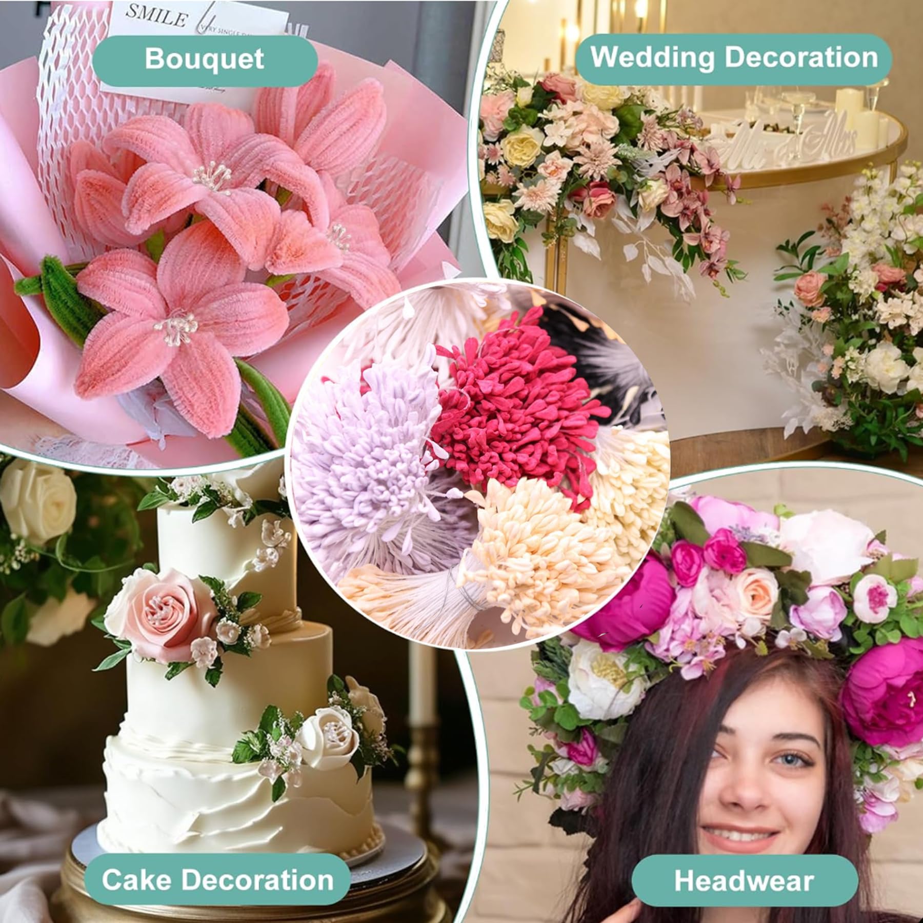 1400 étamines Artificielles Double Tête - 4 Couleurs - Pour Fleurs DIY, Bijoux, Déco