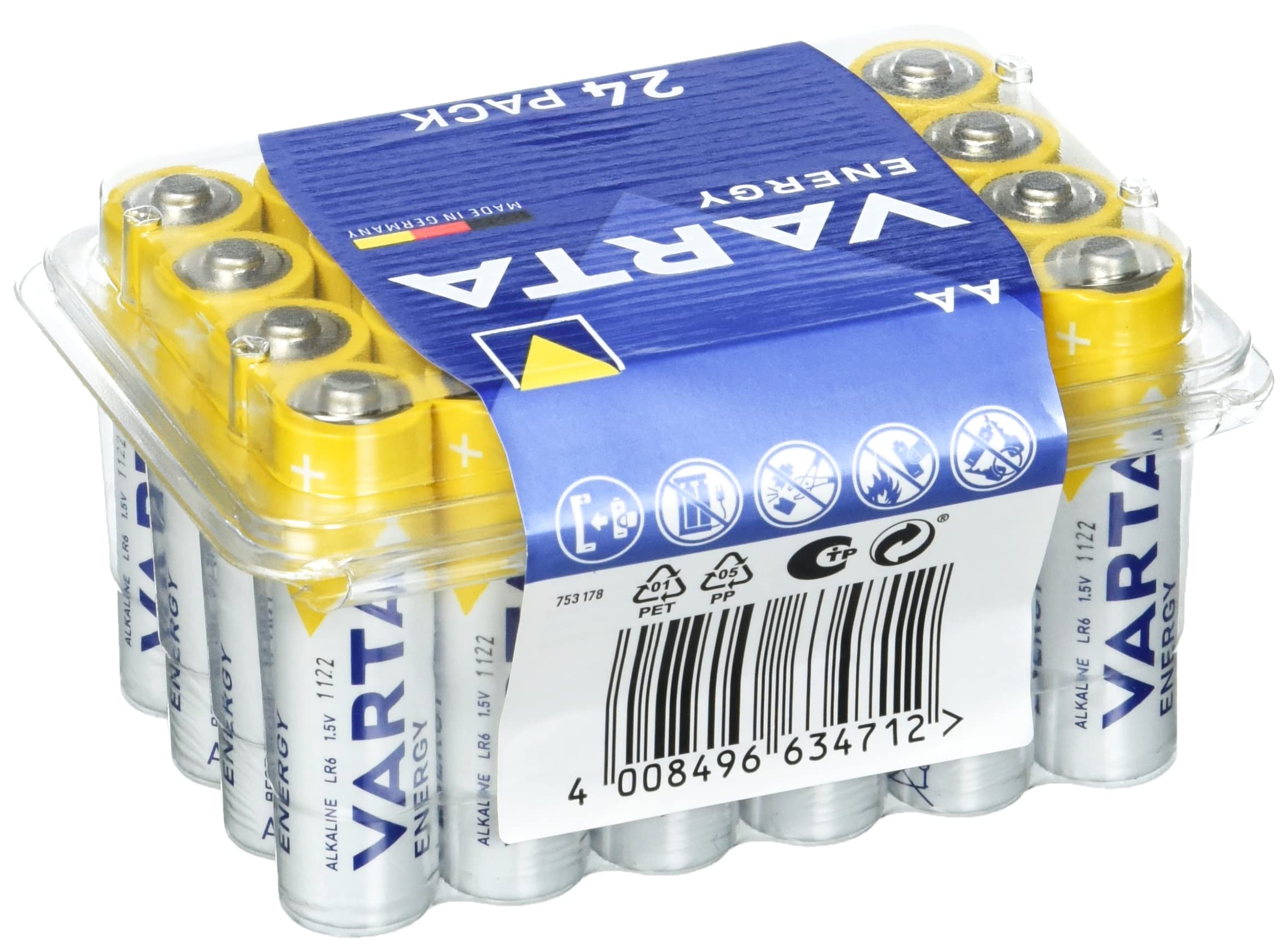 Piles Alcalines 1.5V 24 Piles AAA VARTA Energy - Alcalines 1,5V, Emballage Recyclé, Fabriqué En Allemagne Piles Pour Télécommande Horloge