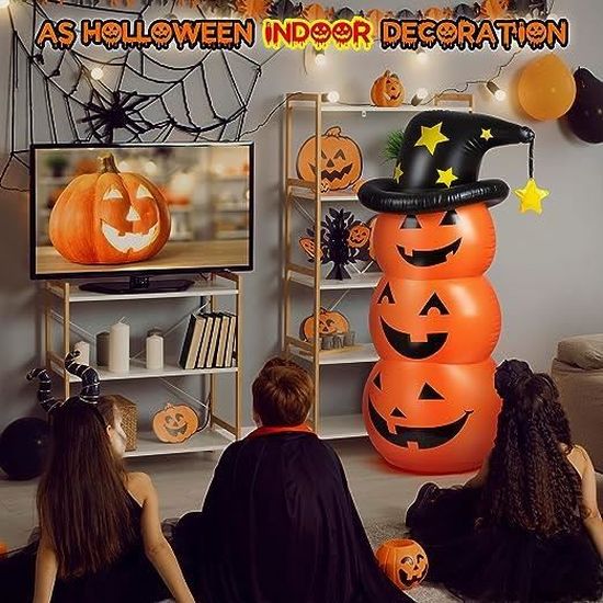 Décoration Halloween Intérieur Extérieur Ballon Gonflable Géant Halloween Citrouille - 146 Cm De Haut, Avec Chapeau De Sorcière, Pour Décoration Citrouille Géante Gonflable