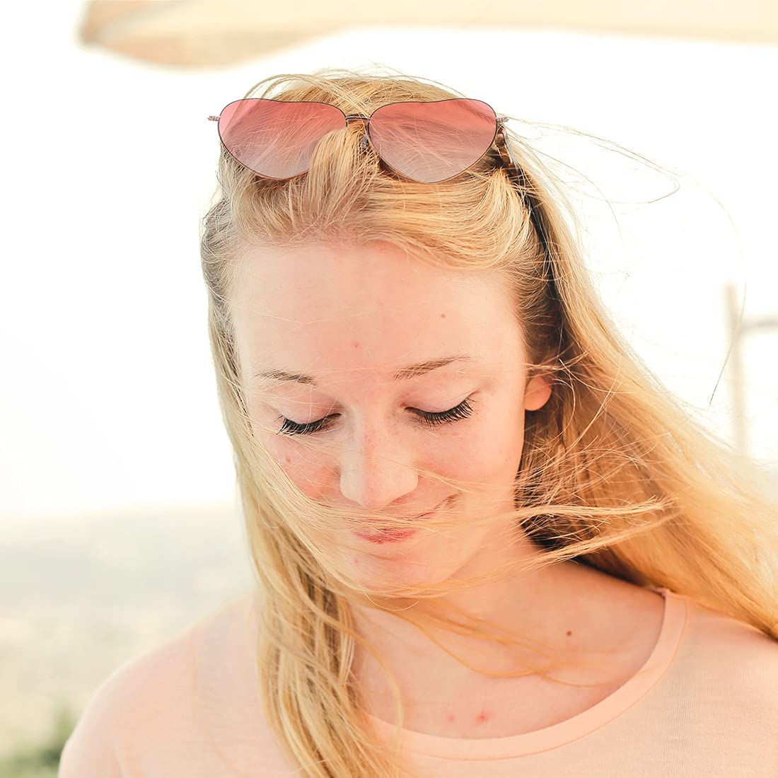 Lunettes De Soleil Rose CXNXFD Lot De 2 Lunettes De Soleil En Forme De Cœur Style Rétro | Monture Or Rose, Verres Dégradés | Pour Festival, Carnaval, Déguisement Lunettes Rétro Rose