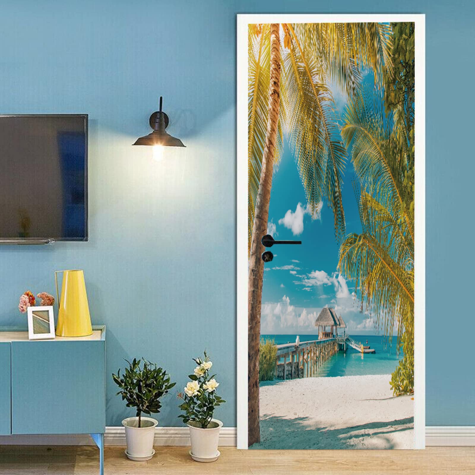 Transformez une simple porte ou un mur nu en une fenêtre sur un paysage exotique avec cet autocollant trompe-l'œil en 3D ! Le design donne une impression de profondeur et d'évasion. Il est en PVC de bonne qualité, donc résistant à l'eau, à l'humidité et facile à nettoyer. Le grand format (90x200 cm, composé de 2 bandes de 45x200 cm) fait son effet. La pose est ultra simple : il suffit de décoller le backing et de coller sur une surface lisse, propre et sans poussière (porte en bois lisse, verre, carrelage plat…). Il est totalement amovible et ne laisse pas de résidu collant si vous le retirez doucement. Parfait pour redécorer une chambre, un salon, un couloir sans travaux ni peinture. Il masque les défauts et apporte immédiatement une nouvelle ambiance. Suivez le mode d'emploi fourni (enlever la poignée de porte, bien nettoyer, utiliser une raclette pour chasser les bulles d'air) pour un résultat parfait. Une solution rapide et économique pour un relooking réussi !