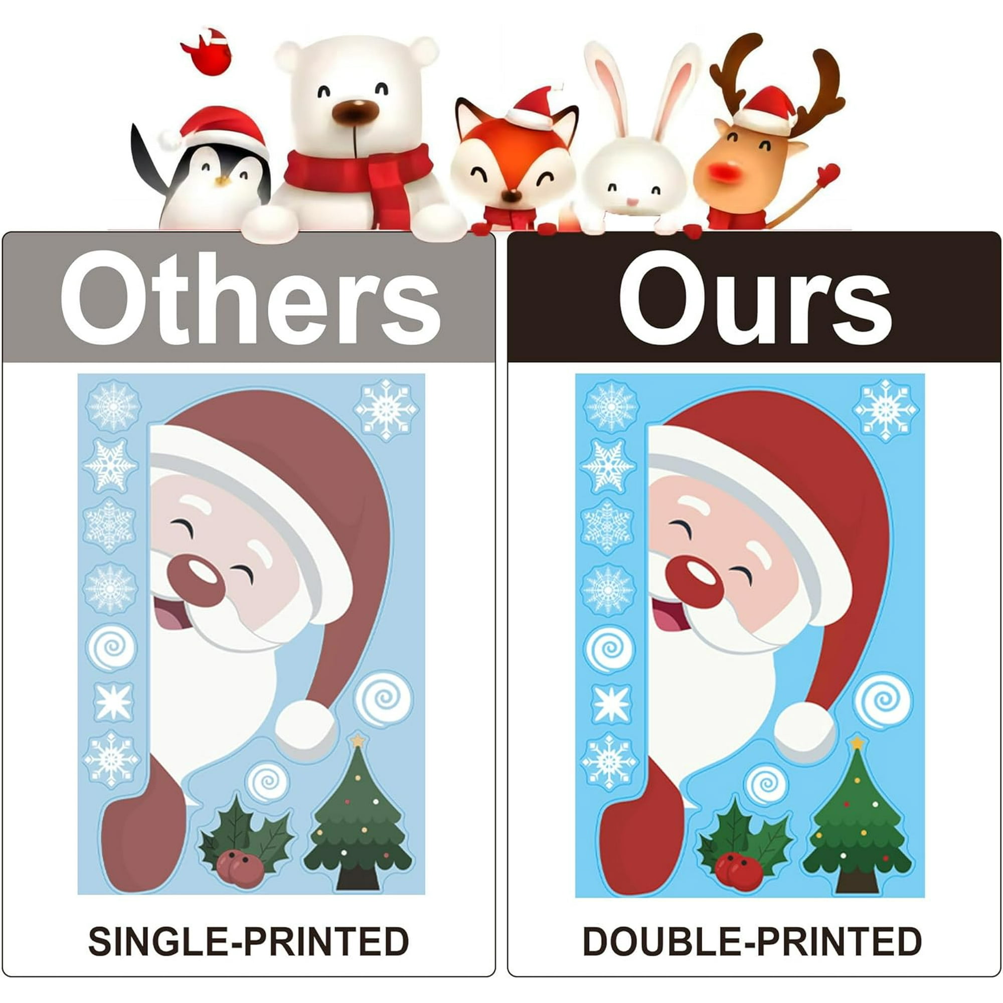 Décalcomanie Fenêtre Père Noël Autocollant Fenêtre Voiture Noël - Père Noël Et Flocons Double Face - Décoration Amovible Pour Vitres, Facile à Poser Décalcomanie Fenêtre Voiture Père Noël Double Face