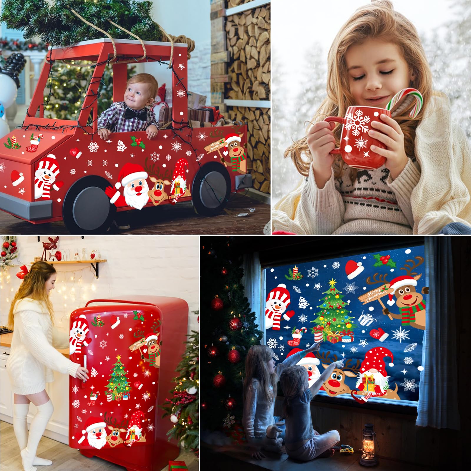 Autocollant Fenêtre Voiture Noël - Père Noël Et Flocons Double Face - Décoration Amovible Pour Vitres, Facile à Poser