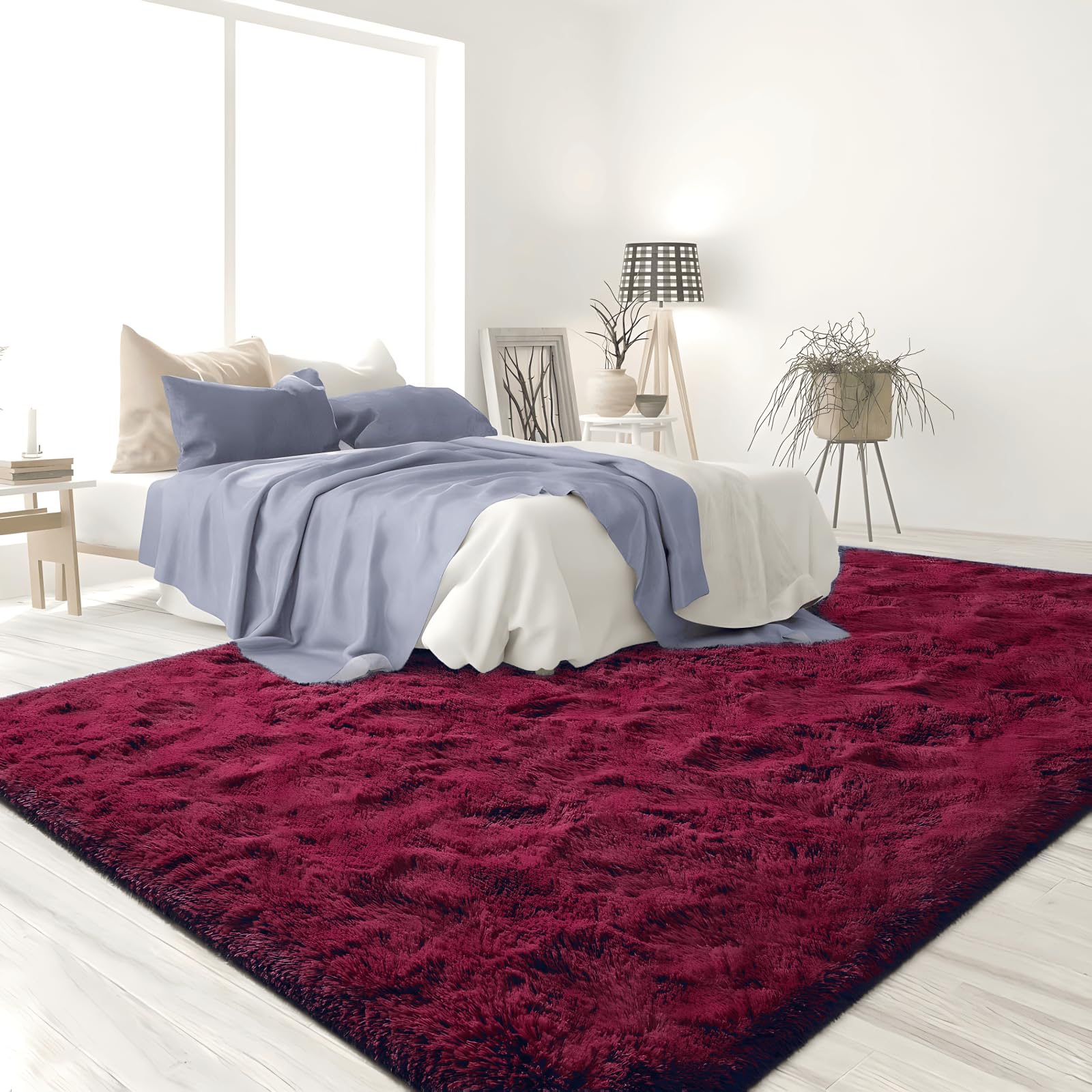Tapis Doux Salon Chambre Décoration Intérieure Tapis Rond à Poils Longs – Doux Et épais, Antidérapant – Diamètre 160 Cm Ou 200 Cm – Couleur Bordeaux – Pour Salon, Chambre Couleur Bordeaux Déco