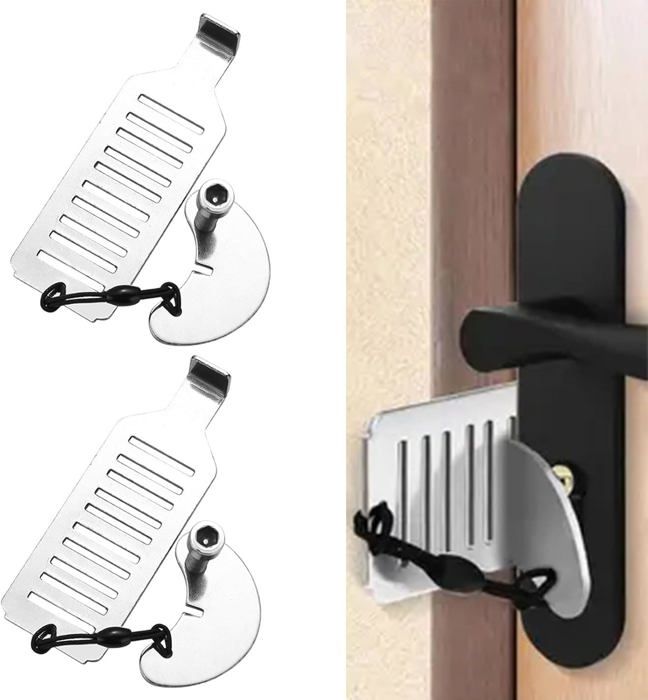 Pour te sentir plus en sécurité chez toi ou en déplacement, ce lot de 2 systèmes de verrouillage portable est très utile. Il comprend une chaîne de sécurité classique à fixer sur le chambranle (avec vis) et un bloque-porte qui se glisse sous la porte affleurante (sans installation). Tous deux en acier inoxydable robuste, ils résistent aux tentatives d’effraction légères. La chaîne permet d’entrouvrir la porte sans l’ouvrir en grand, idéal pour vérifier qui sonne. Le bloque-porte, lui, empêche carrément l’ouverture depuis l’extérieur. Parfait pour les portes d’entrée, les chambres d’hôtel, les Airbnb, ou pour empêcher les enfants d’ouvrir seuls. Facile à transporter, ça rassure pendant les voyages ou en colocation. Une sécurité supplémentaire simple, discrète et efficace.