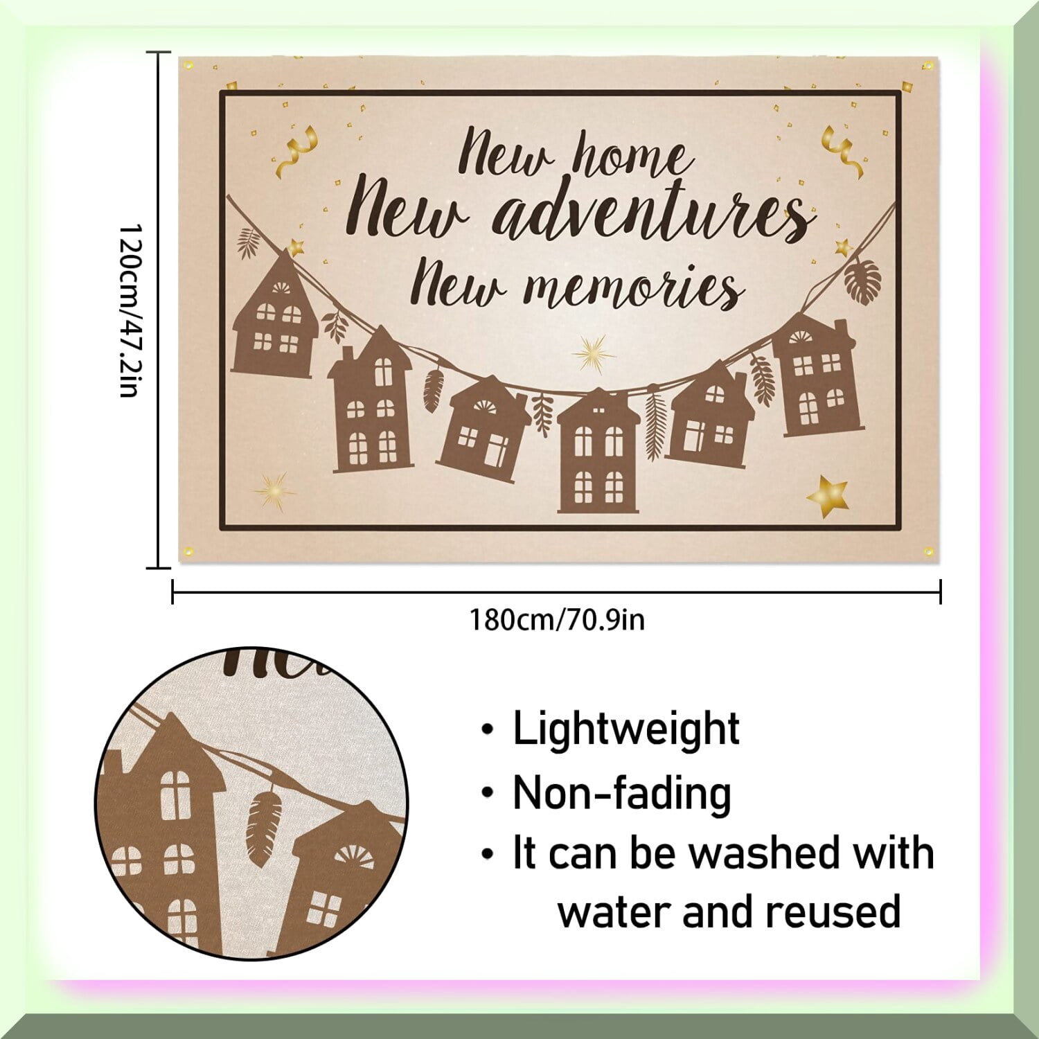 Tu viens d'emménager ou un proche vient d'acheter une maison ? Célébrez ça avec ce joli lot de 3 bannières ! Les messages sont parfaits : \Nouvelle maison\, \Nouvelle aventure\, \Nouveaux souvenirs\. Elles sont en papier cartonné léger et pailleté, donc elles brillent joliment à la lumière. Les couleurs sont vives et elles sont solides (pas de déchirure facile). Pour les accrocher, c'est ultra simple : il y a des trous pré-percés et de la ficelle fournie. Pas besoin d'outils, tu enfiles, tu ajustes l'espacement, et tu les suspends où tu veux : au mur, au plaufaond, sur une branche décorative... Ça marche en intérieur comme en extérieur (mais évite la pluie bien sûr). En plus d'une pendaison de crémaillère, tu peux les réutiliser pour un anniversaire, une réunion de famille, ou pour décorer ton bureau. Elles ajoutent une touche festive et personnelle en un clin d'œil. Le pack contient les 3 banderoles. Si tu as la moindre question pendant l'utilisation, on est là pour t'aider. Un petit déco pas cher qui fait son effet !