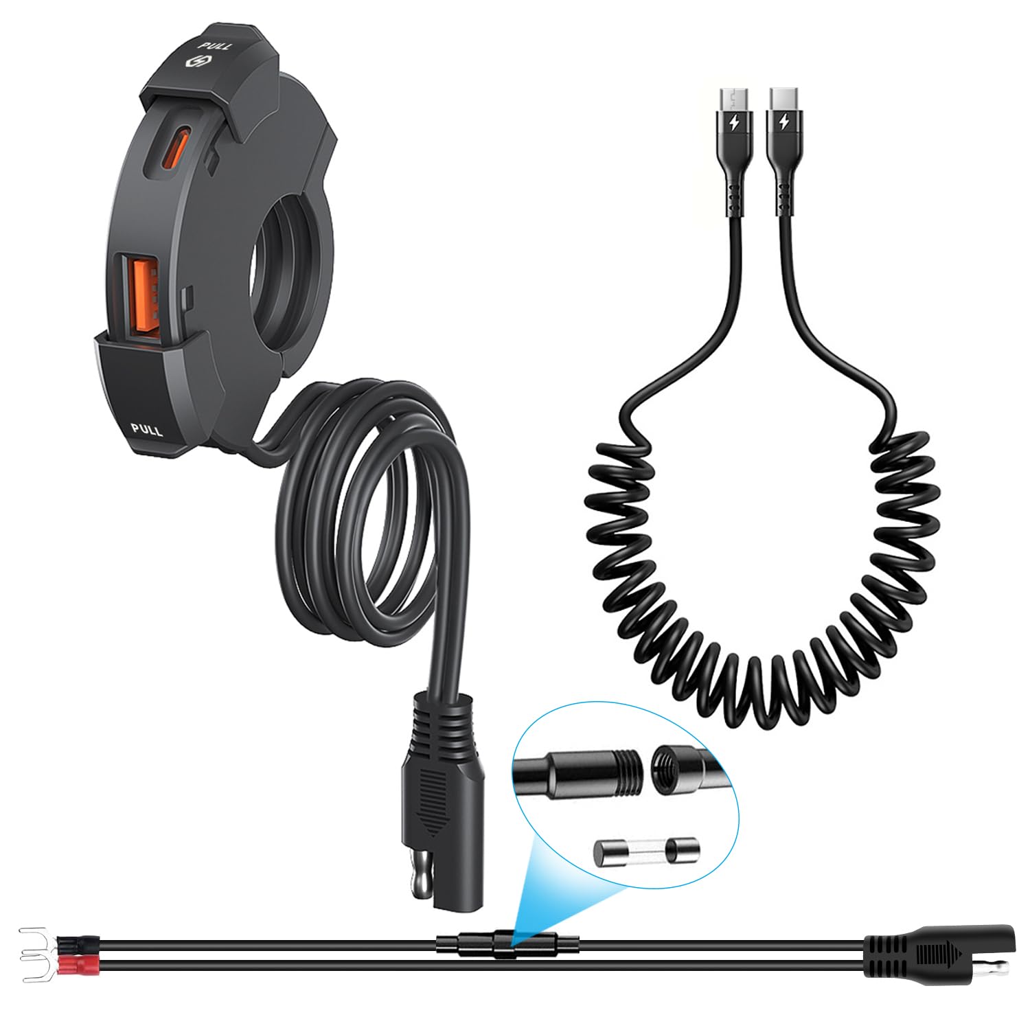 Prise USB étanche Moto Avec Interrupteur - Charge Rapide QC3.0 Et PD Type-C, Double Port Pour 12V-24V (voiture, Camping-car, Tricycle)