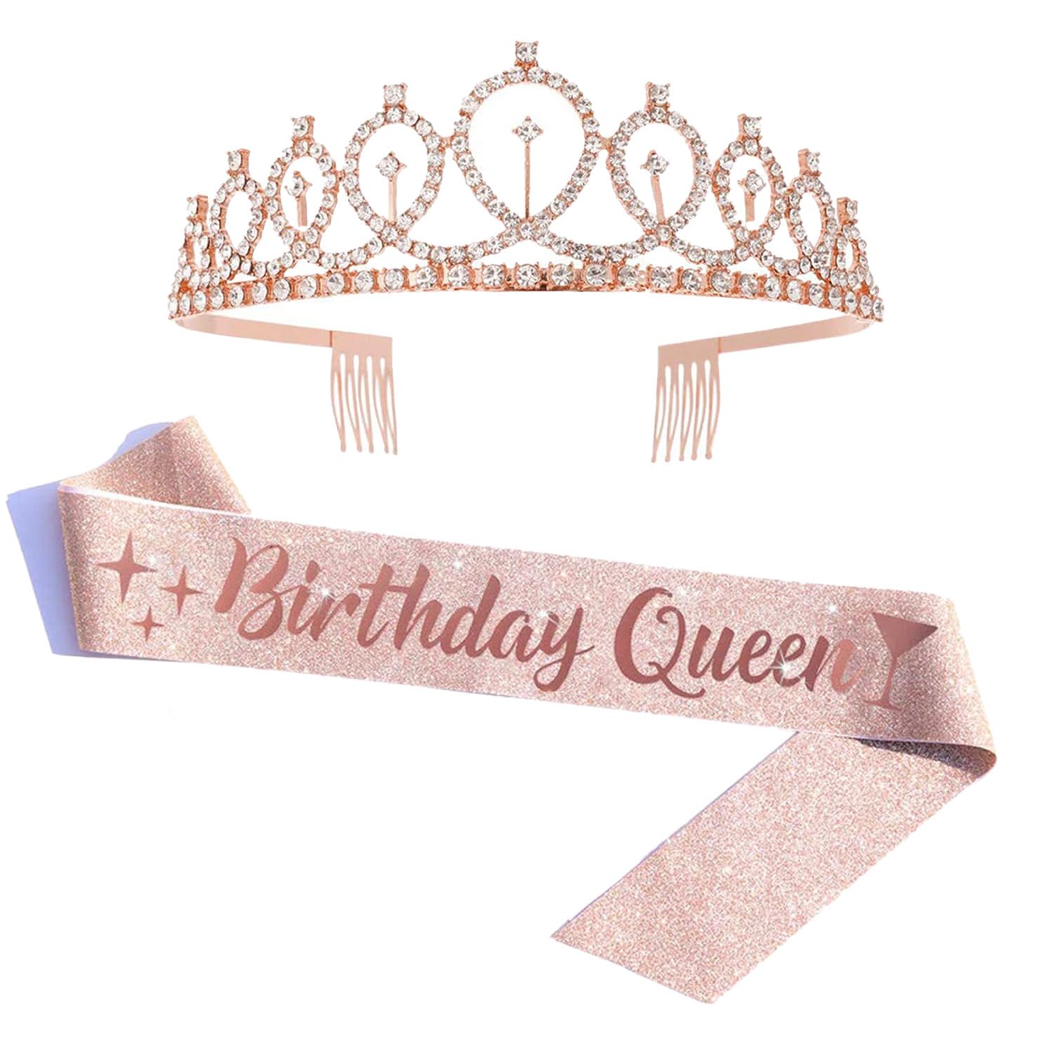 Couronne Cristal Alliage Or Rose Couronne Et écharpe Anniversaire 'Birthday Queen' - Kit Fête En Alliage Et Cuir PU, Réutilisable Couronne Cristal Or Rose