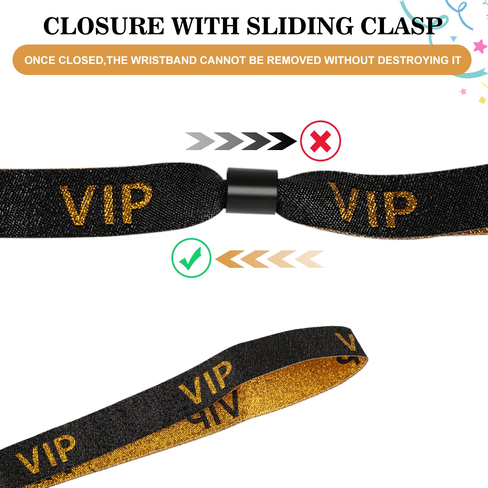Bracelets Fête Noir Or Bracelets D'Entrée En Tissu VIP - Lot De 30 | Pour Festival, Concert, Mariage, Anniversaire | Fermeture Adhésive Lot Bracelets Réutilisables