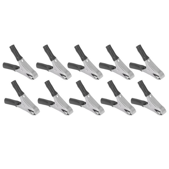 Un set super pratique pour tous vos projets électroniques ou de bricolage ! Ce kit comprend 12 pinces crocodiles isolées, réparties en 4 couleurs (noir, rouge, bleu, blanc) pour faciliter l’identification des fils. Chaque pince mesure environ 41 mm de long, avec une ouverture de 6 mm et un trou de connexion de 2 mm compatible avec les fiches bananes standard. Les mâchoires sont en laiton nickelé pour une excellente conductivité, et le boîtier en plastique PA offre une isolation sûre jusqu’à 30V AC / 60V DC (10A). Les ressorts sont robustes, la prise est ferme, et les poignées dentelées tiennent bien les fils fins. Parfait pour connecter des batteries, tester des circuits, souder, ou utiliser avec un multimètre. Un indispensable pour les amateurs d’électronique, les étudiants, les techniciens… ou simplement pour dépanner à la maison !