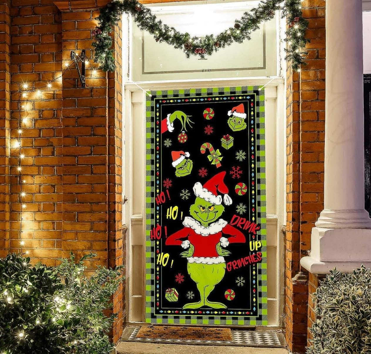 Bannière De Porte Noël Grin-ch - Décoration Festive En Tissu Polyester 180x90 Cm Avec Velcro - Pour Extérieur/Intérieur, Fêtes & Photos