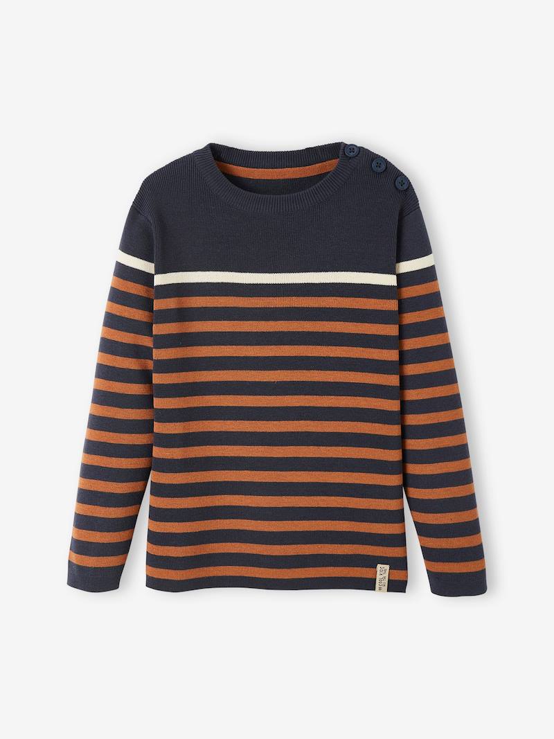 Pull Garçon Rayé Vertbaudet - Col Rond, Manches Longues, Maille Douce 60% Coton 40% Acrylique, Ouverture Pressionnée épaule