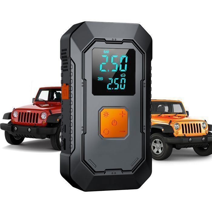 Plus jamais de batterie à plat en pleine nuit ou sur une route déserte ! Ce booster portable est une vraie bête de secours : il délivre un pic à 5000A, assez pour relancer la plupart des voitures essence jusqu’à 6.0L et diesel jusqu’à 4.0L. En plus, il fait office de powerbank géant (48800 mAh) avec deux ports USB pour recharger téléphone, tablette ou même ordinateur portable. Il intègre une lampe LED 4 modes (éclairage, flash, SOS, alarme) très utile dans le noir. La sécurité est maximale : protection anti-étincelles, anti-inversion de polarité, anti-surchauffe… et les pinces intelligentes te guident pour éviter les erreurs de branchement. Compact, il se range facilement dans la voiture et tient jusqu’à 12 mois sans se décharger. Un indispensable pour tous les conducteurs – roulez l’esprit tranquille !