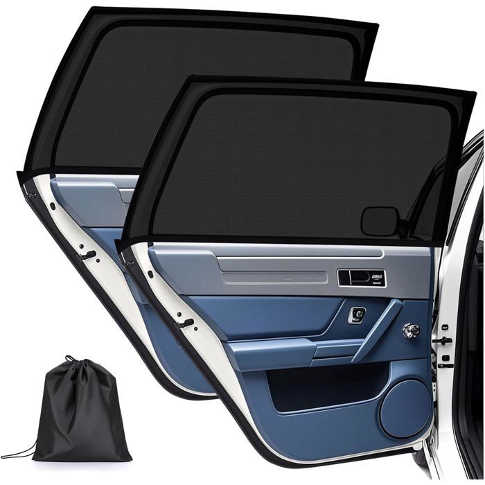 Tu voyages souvent en voiture avec des enfants ou un bébé, et le soleil tape sur les vitres arrière ou latérales ? Ces pare-soleil sont indispensables ! Le lot comprend 2 écrans en nylon mesh semi-transparent, de 44x36 cm chacun. Ils laissent passer la lumière mais bloquent les UV et la chaleur, pour protéger la peau délicate des petits. Le mesh permet aux enfants de voir dehors sans être éblouis. Chaque pare-soleil a 2 ventouses en silicone puissantes, qui se fixent et s'enlèvent facilement sur la vitre, sans laisser de trace. Même à grande vitesse, ils tiennent bien. Tu peux les plier et les ranger dans la pochette fournie. Idéal pour les trajets scolaires, les longs voyages, ou quand tu te gares au soleil. Un accessoire simple, pas cher, mais qui change vraiment le confort à bord. Et en plus, ça protège aussi les sièges et le tableau de bord de la décoloration !