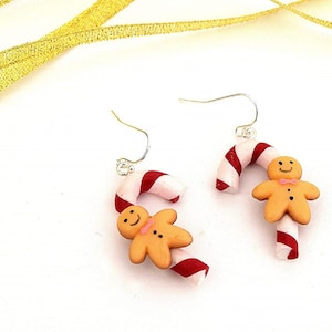 Boucles D'oreilles Bonhomme En Pain D'épice De Noël - Alliage De Zinc, Pendantes Environ 6 Cm - Bijou Festif Pour Femmes Et Filles