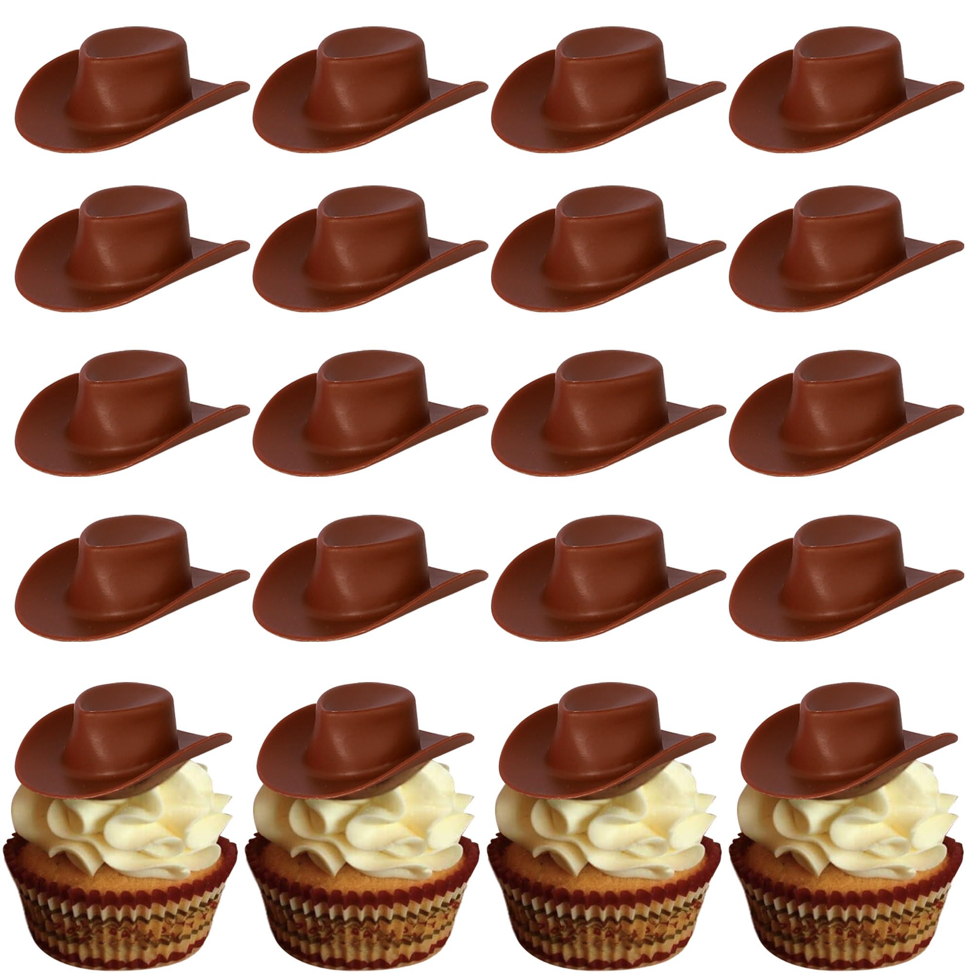 20 Mini Chapeaux De Cowboy En Plastique - Décorations Miniatures Marron Pour Fêtes, Mariages, DIY