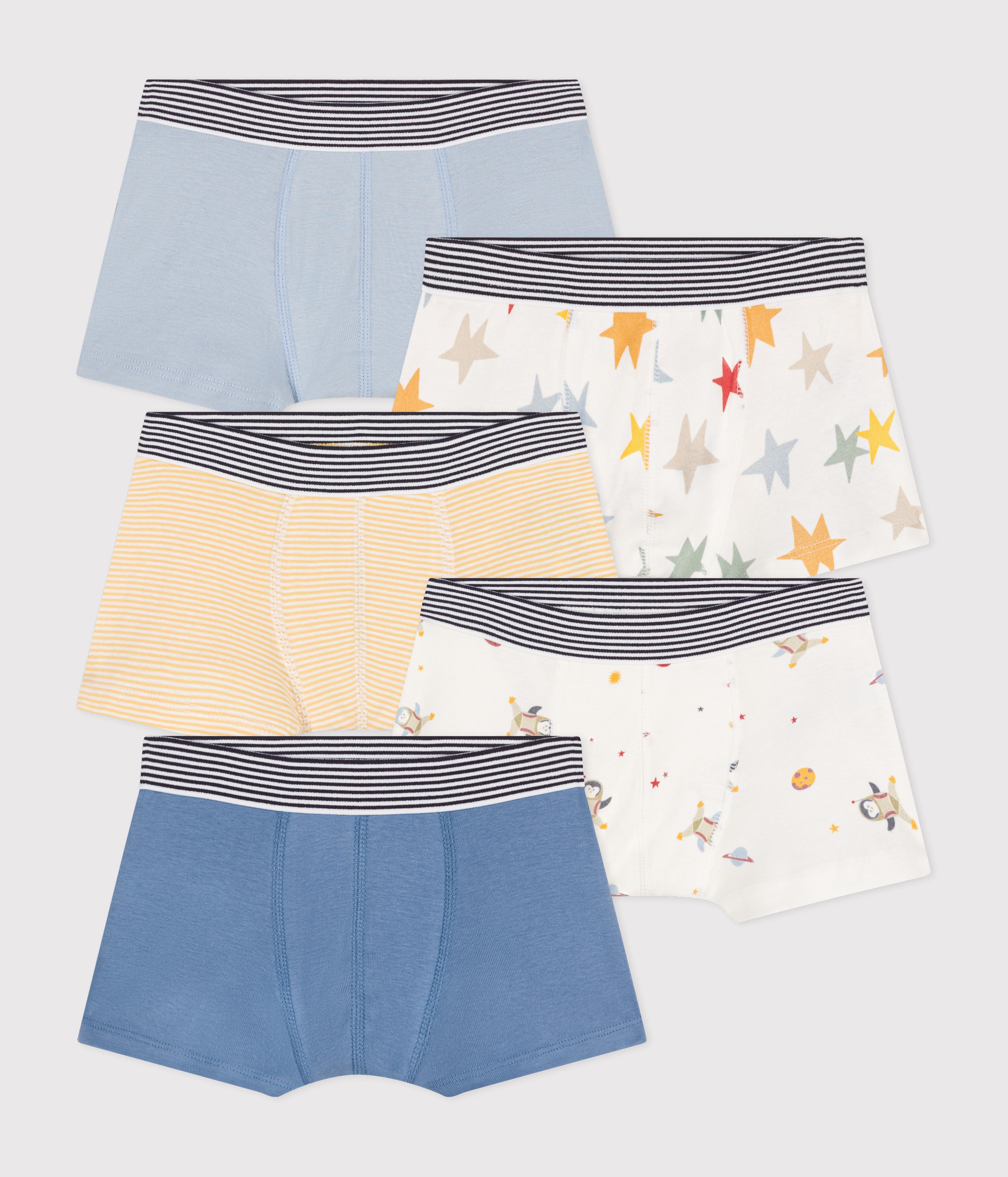 Sous-vêtements Garçon Confortables Taille élastique Lot De 5 Boxers Drapeau Pour Garçon - 95% Coton Bio, élastique Confort - Imprimés Et Rayés Lot Boxers Drapeau Enfant