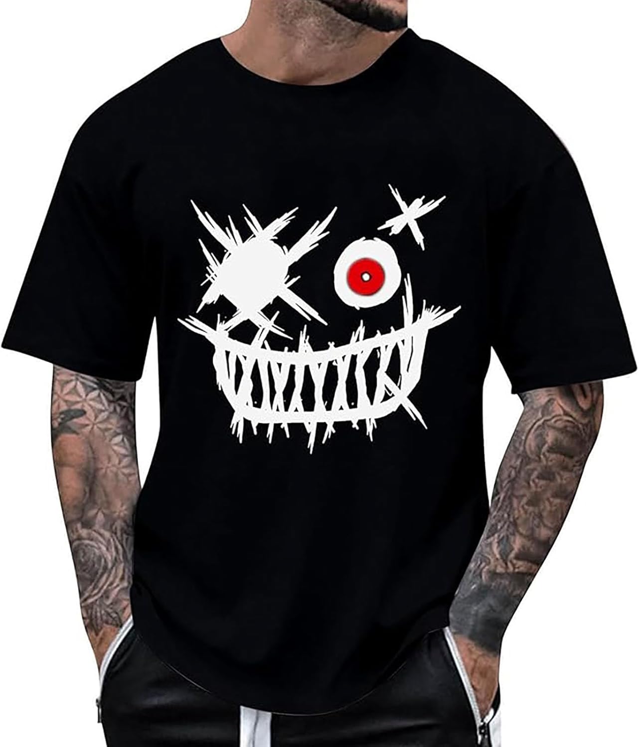 T-shirt Homme Oversize Creepy Smile - Imprimé Streetwear Rétro - Coupe Confortable Pour Le Sport Ou Le Quotidien